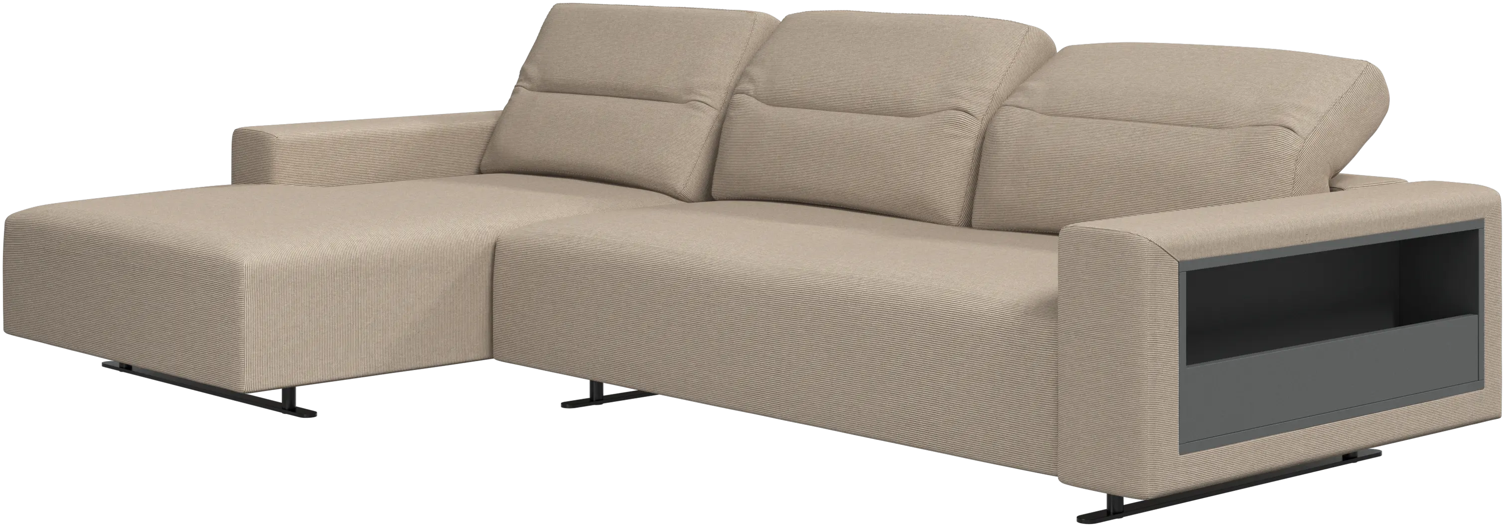 - Canapé Hampton avec dossier ajustable et méridienne à gauche, espace de rangement côté droitTissu • Métal5.819,00 €À partir de 4.149,00 €