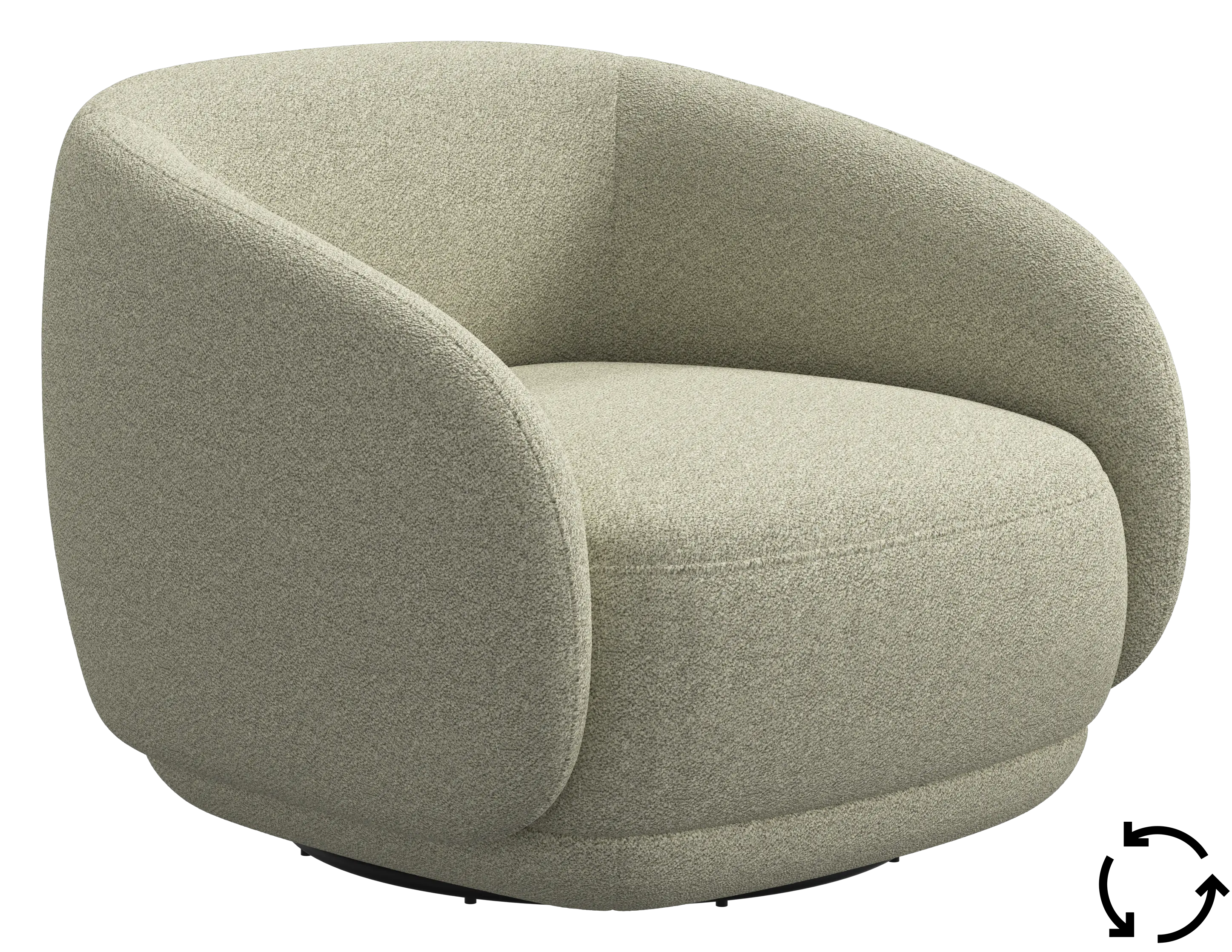 Bolzano アームチェアは、丸みを帯びたアームレストが背もたれへとつながるデザイン。カーブしたフロントパネルを採用し、360度の曲線を描くフォルムが完成しています。