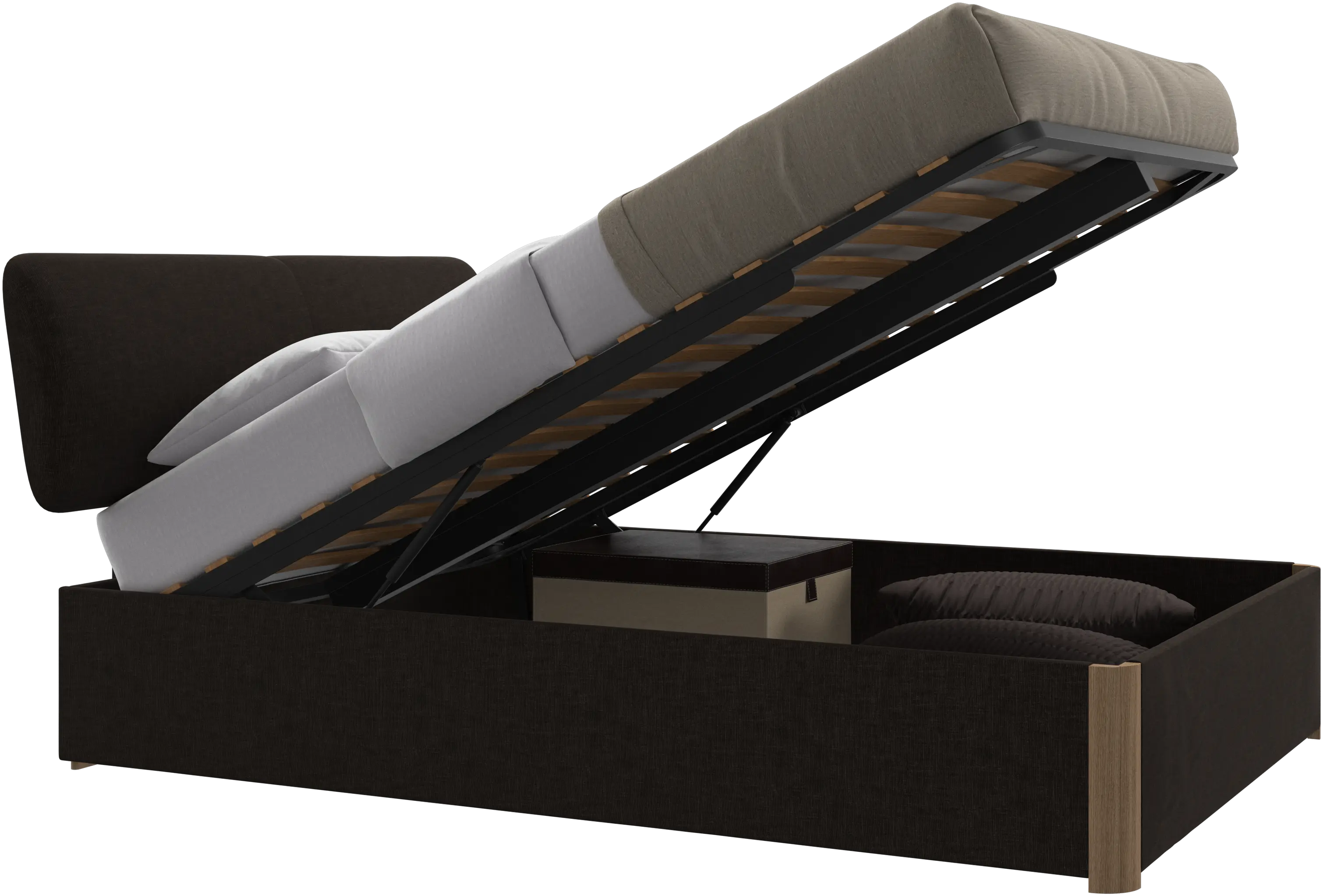 Element はオプションの内蔵コンパートメントで、整理整頓に役立つように設計されています。現代の生活に最適な、機能性を犠牲にすることなくスタイリッシュな収納ベッドです。