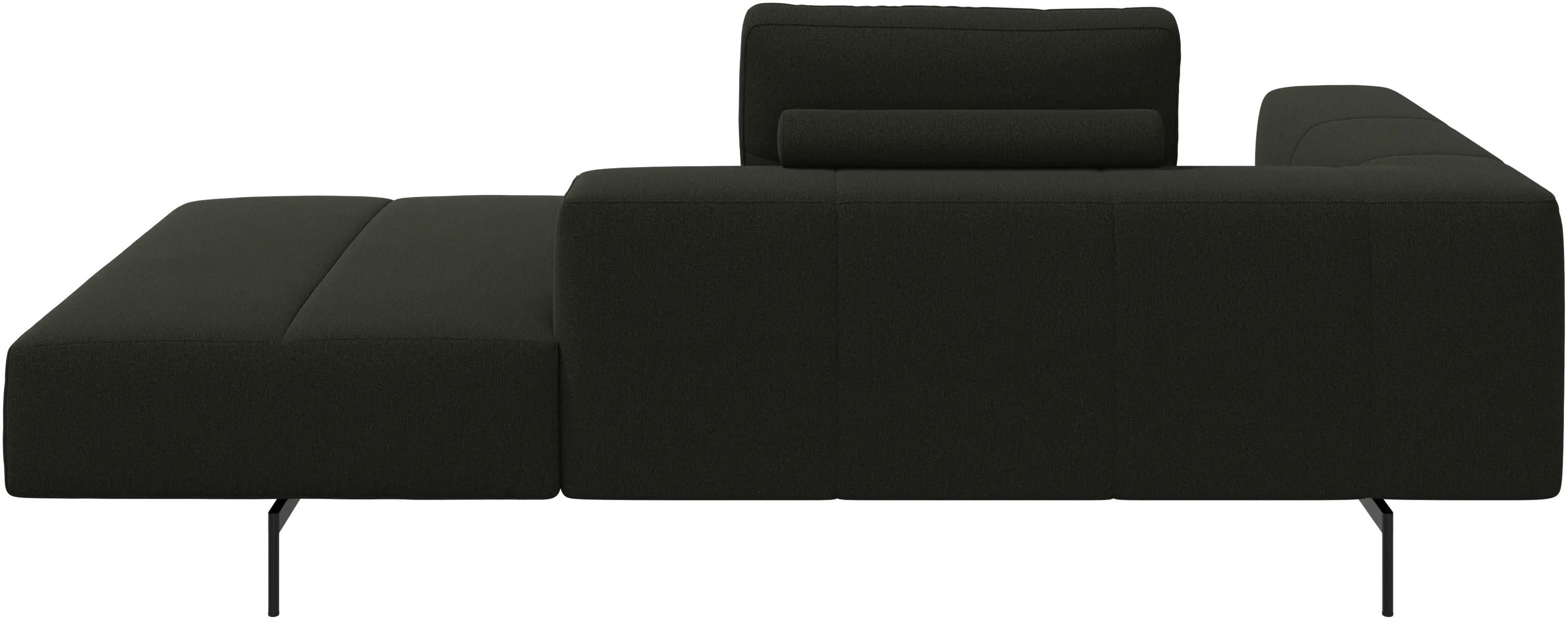 ラウンジソファをご紹介します。レストモジュールは、ソファの座面を左右に広げることができ、ストレスの多い一日の終わりに最適なリラックスタイムを提供します。レストモジュール付きのソファは、快適な座り心地を実現します。L字型のソファは、足を伸ばして座るのが好きな人、座ったままの姿勢が好きな人、どちらのニーズにも応えられるソファです。足を伸ばして、ゆったりとくつろぐことができます。