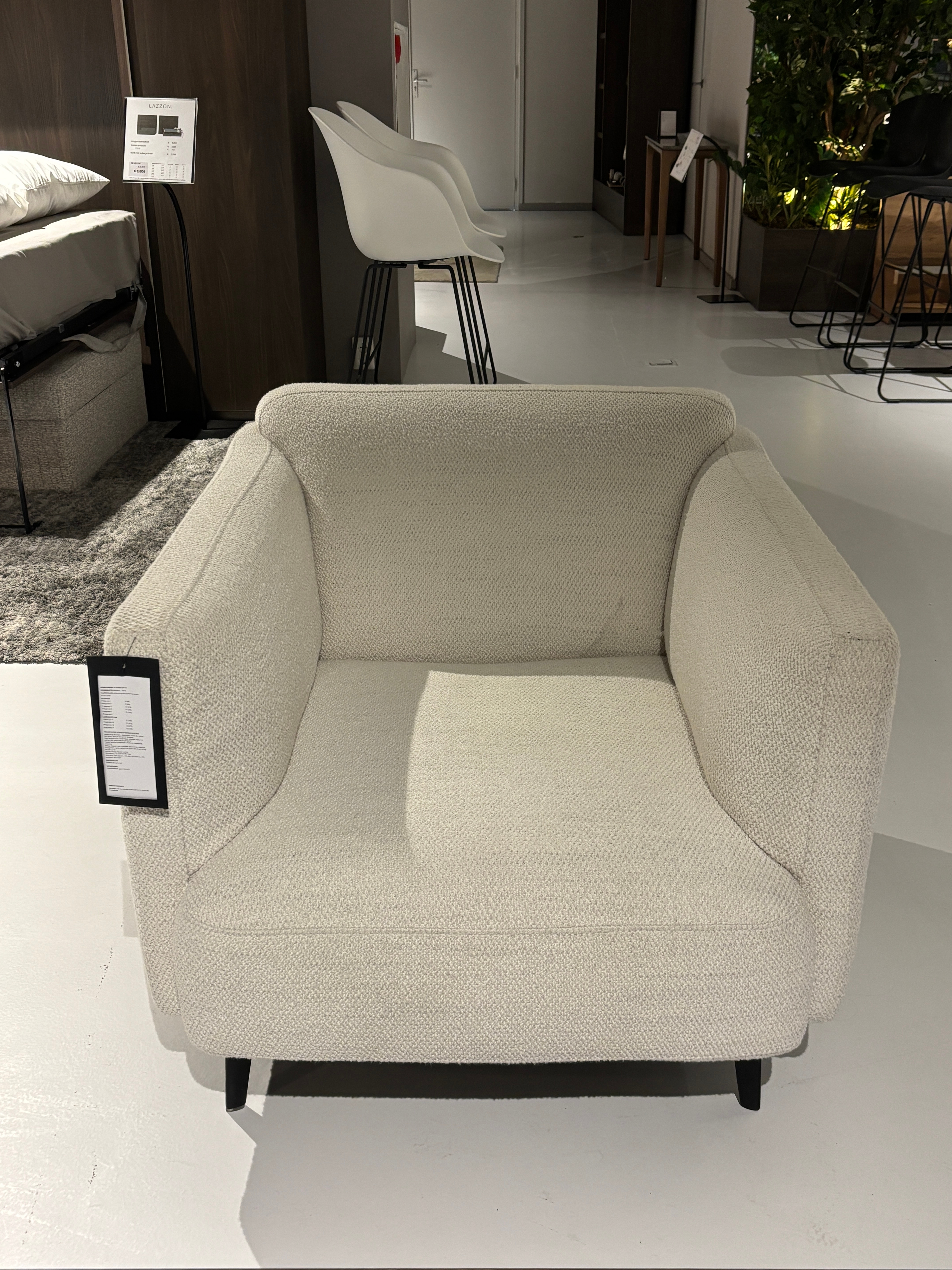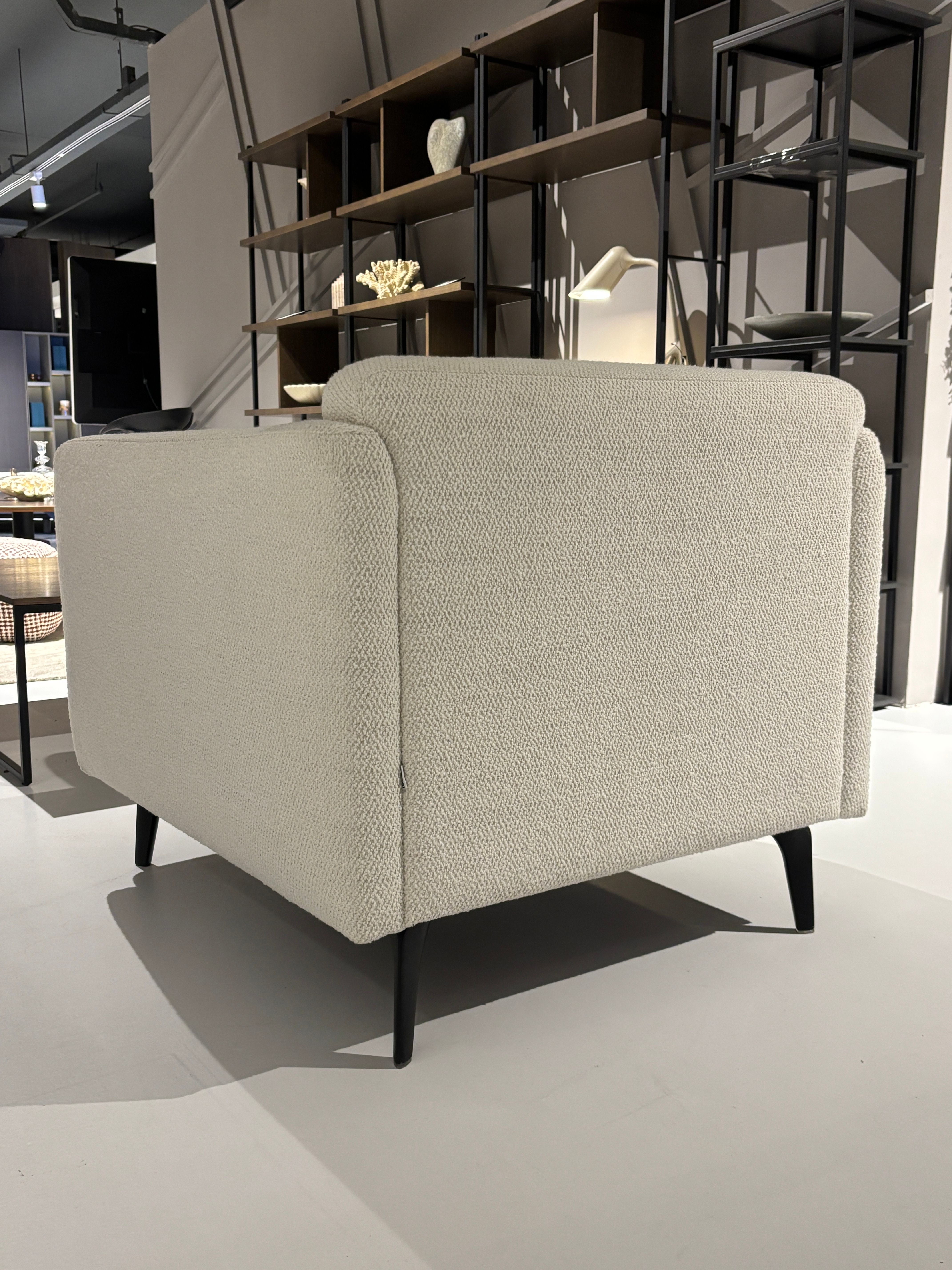 Zachte beklede armleuningen en afgeronde randen zorgen voor een loungegevoel.