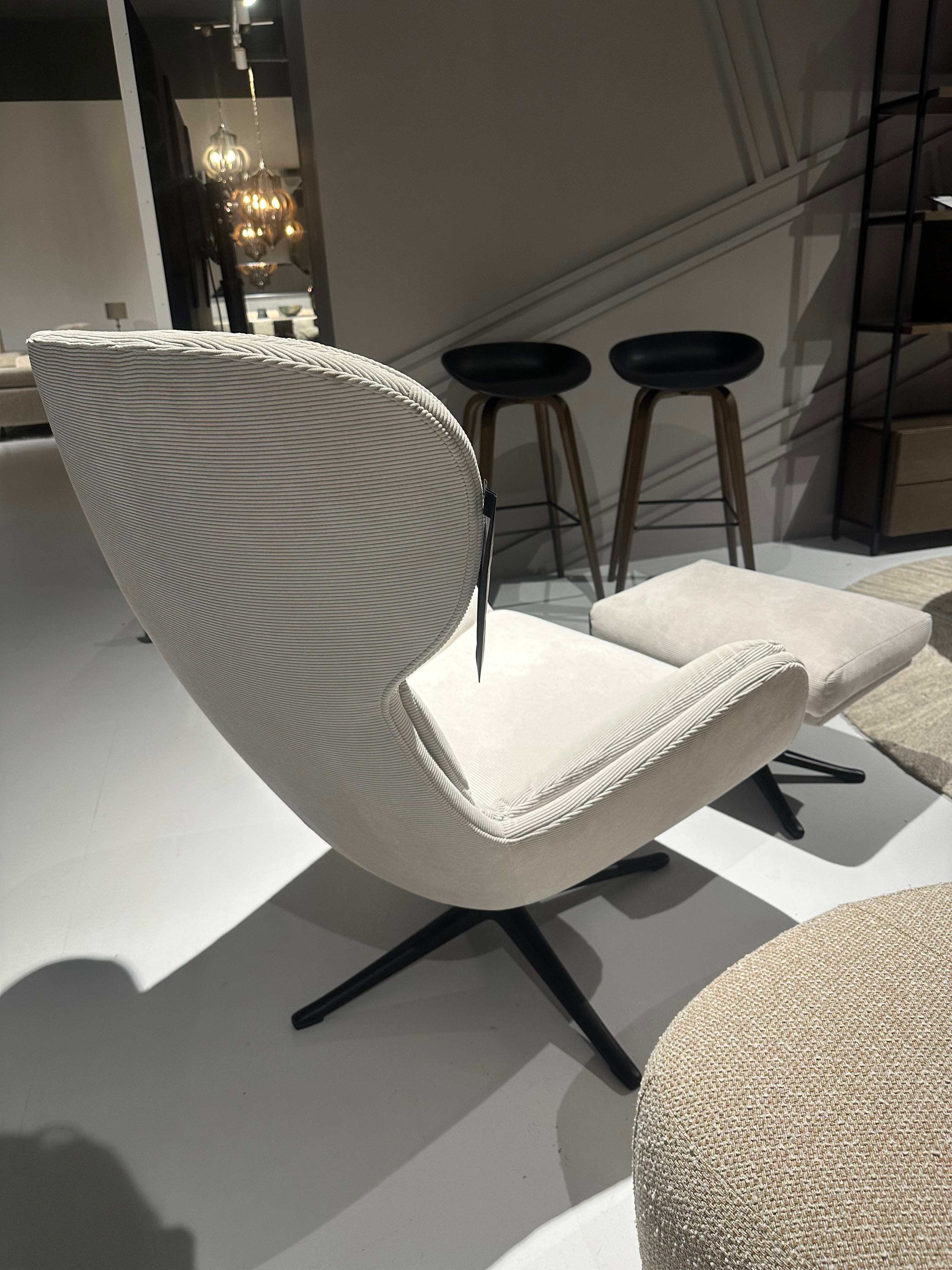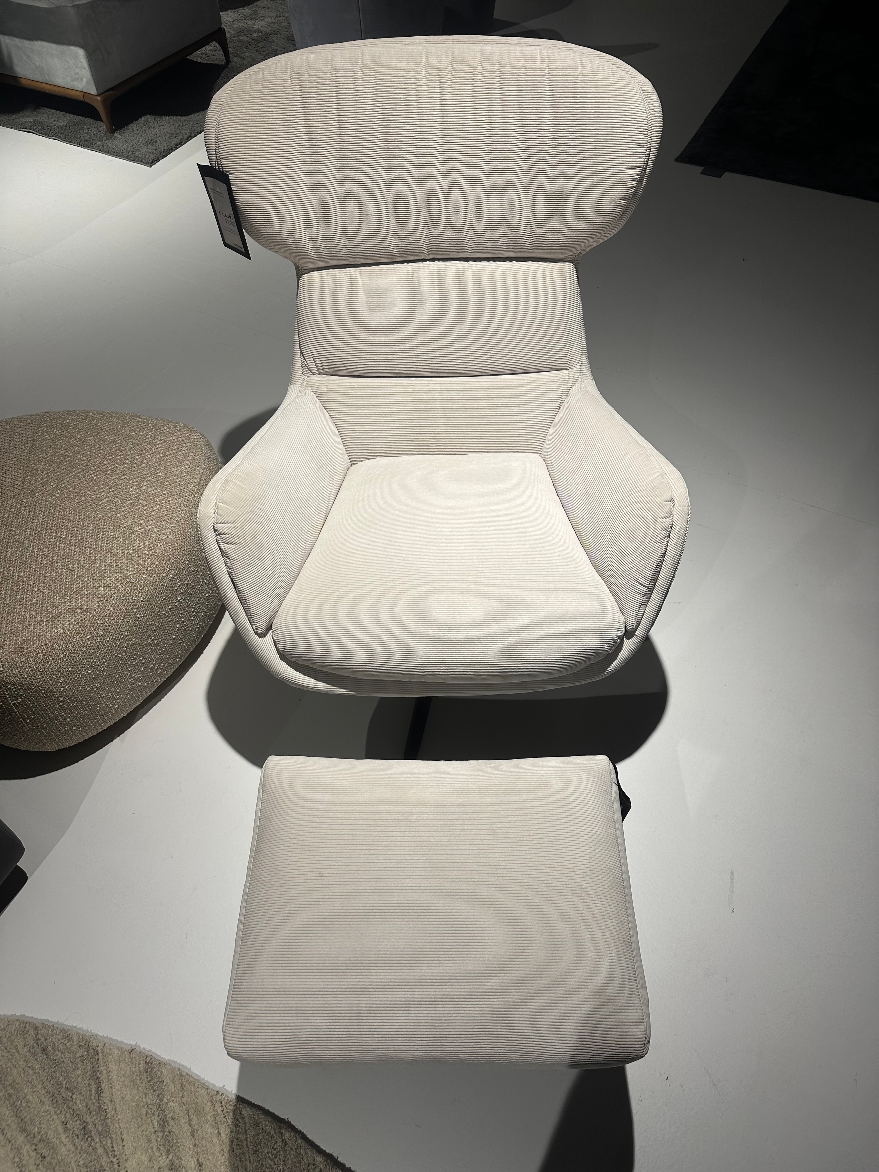 De bijpassende voetenbank maakt het geheel af en zorgt dankzij de licht hellende vorm voor optimale ontspanning. De voetenbank kan zelfs dienen als extra zitplaats.
