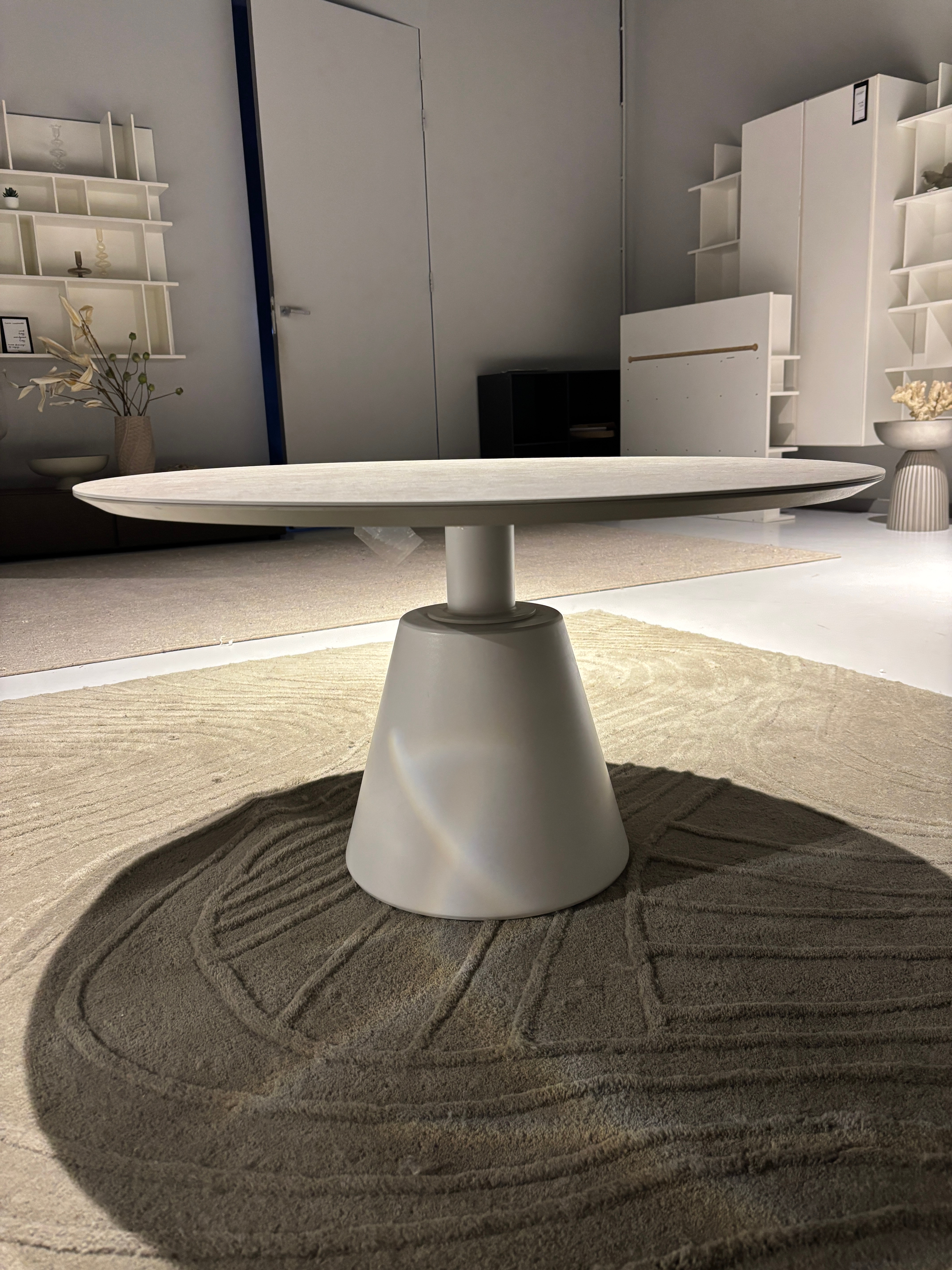 Het gestroomlijnde ontwerp van de Madrid-tafel is een blikvanger. Tegelijkertijd creëert de ronde vorm van de tafel een visuele zachtheid die iedere ruimte opent.