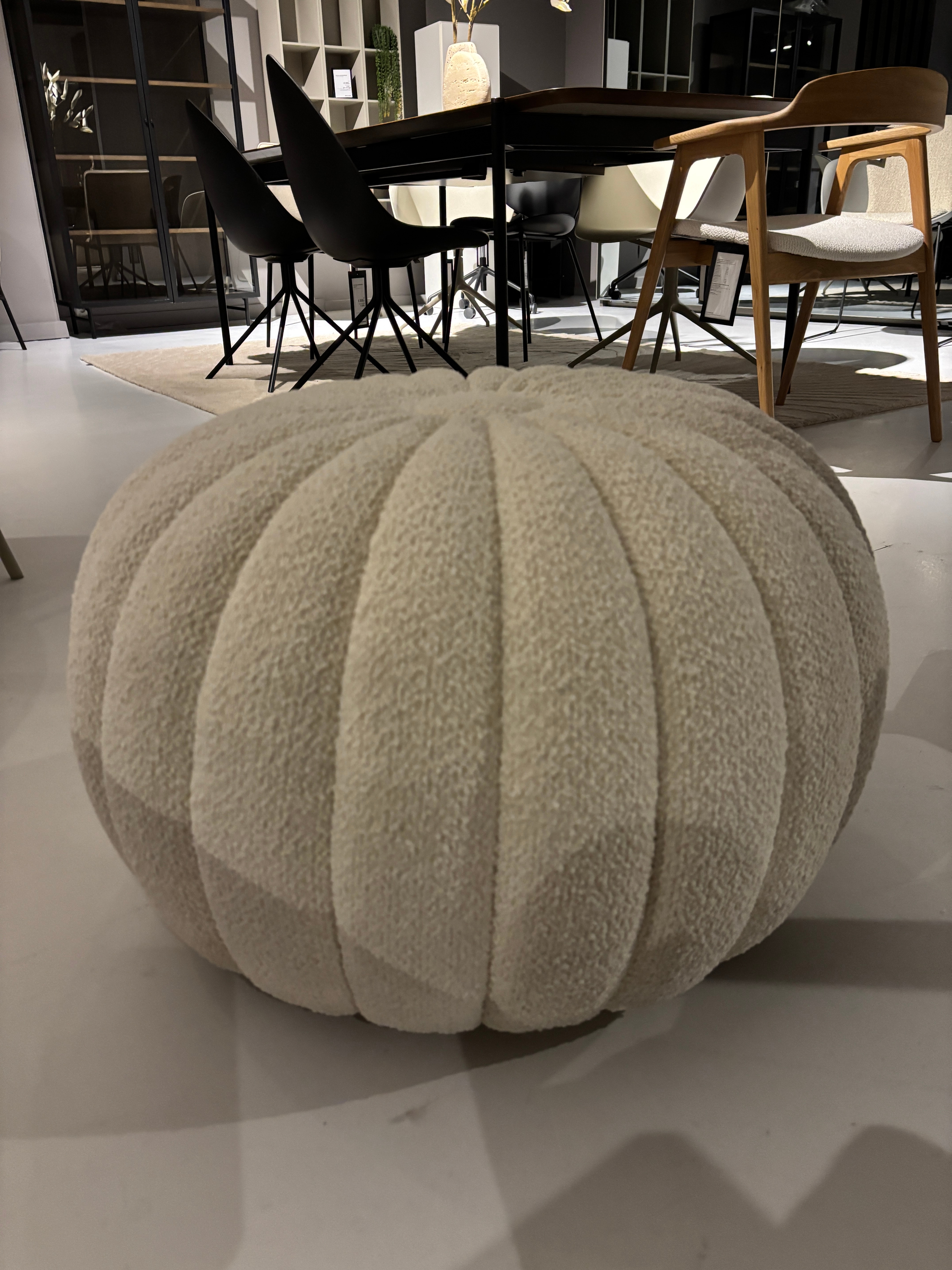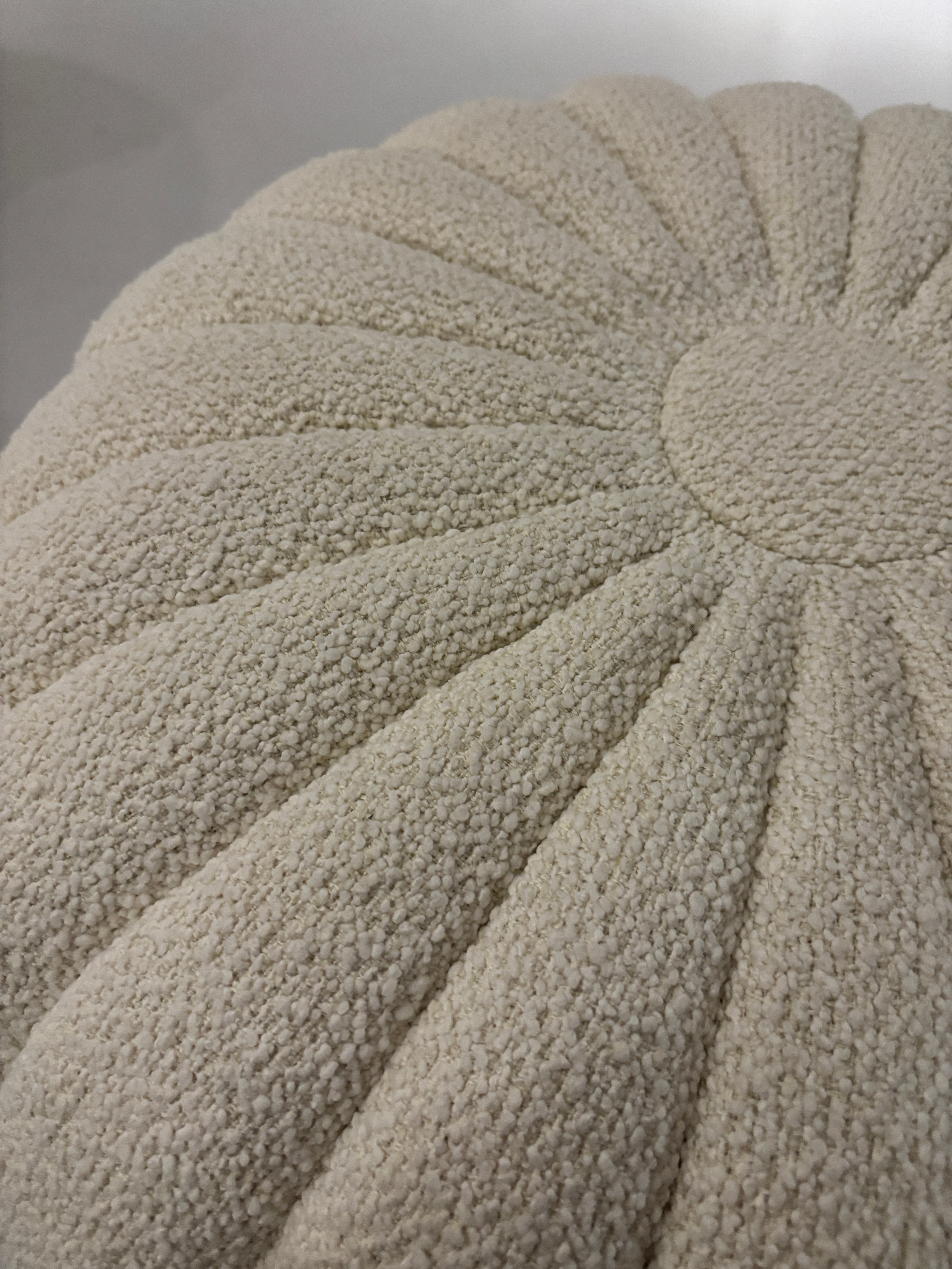 Voel de Limited Edition Rimini bouclé stof in Blossom, exclusief voor onze Sweet Art poefs – met een zachte, vrouwelijke textuur.