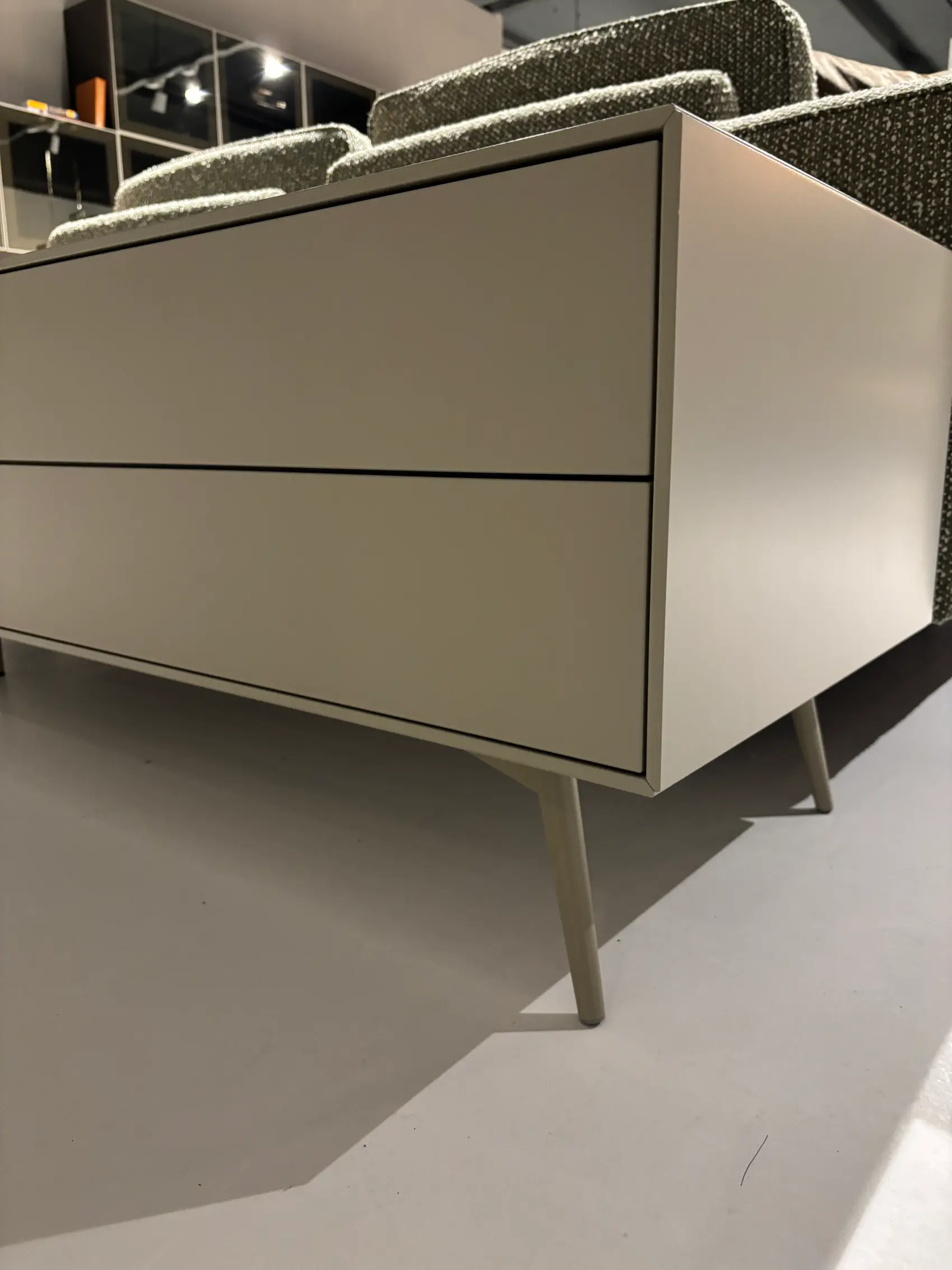 Het meubel heeft schuine randen. Dit fijne detail zorgt voor harmonie en geeft het kastje een elegante, exclusieve toets.