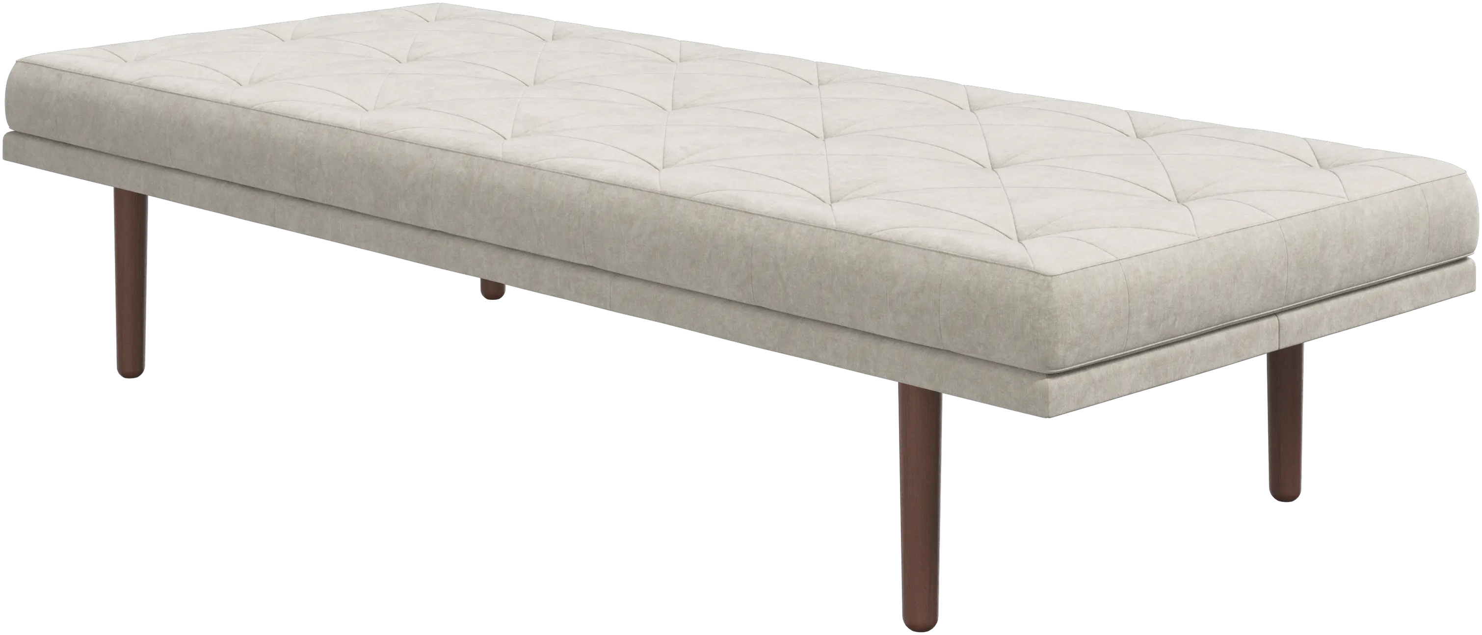 Leżanka jest dostępna w dwóch rozmiarach, z nogami w dwóch kolorach i z opcjami tapicerki z ponad 100 różnych tkanin i skór. Utalentowani pracownicy naszych salonów z chęcią pomogą stworzyć optymalne rozwiązanie.