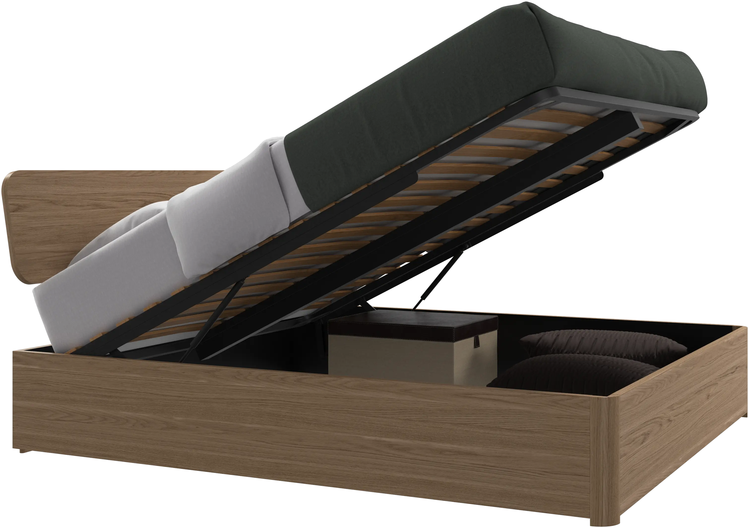 Element łóżko, zagłówek montowany na łóżko, z listwami i rozwiązaniem do przechowywania, bez materaca