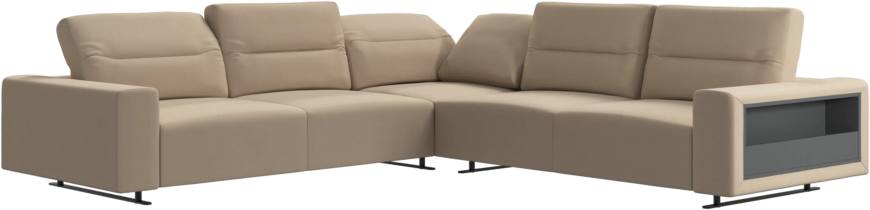 - %Sofa narożna Hampton z regulowanym oparciem i schowkiem po prawej stronieTkanina • Metal32 291,50 złWcześniej 37 990,00 zł