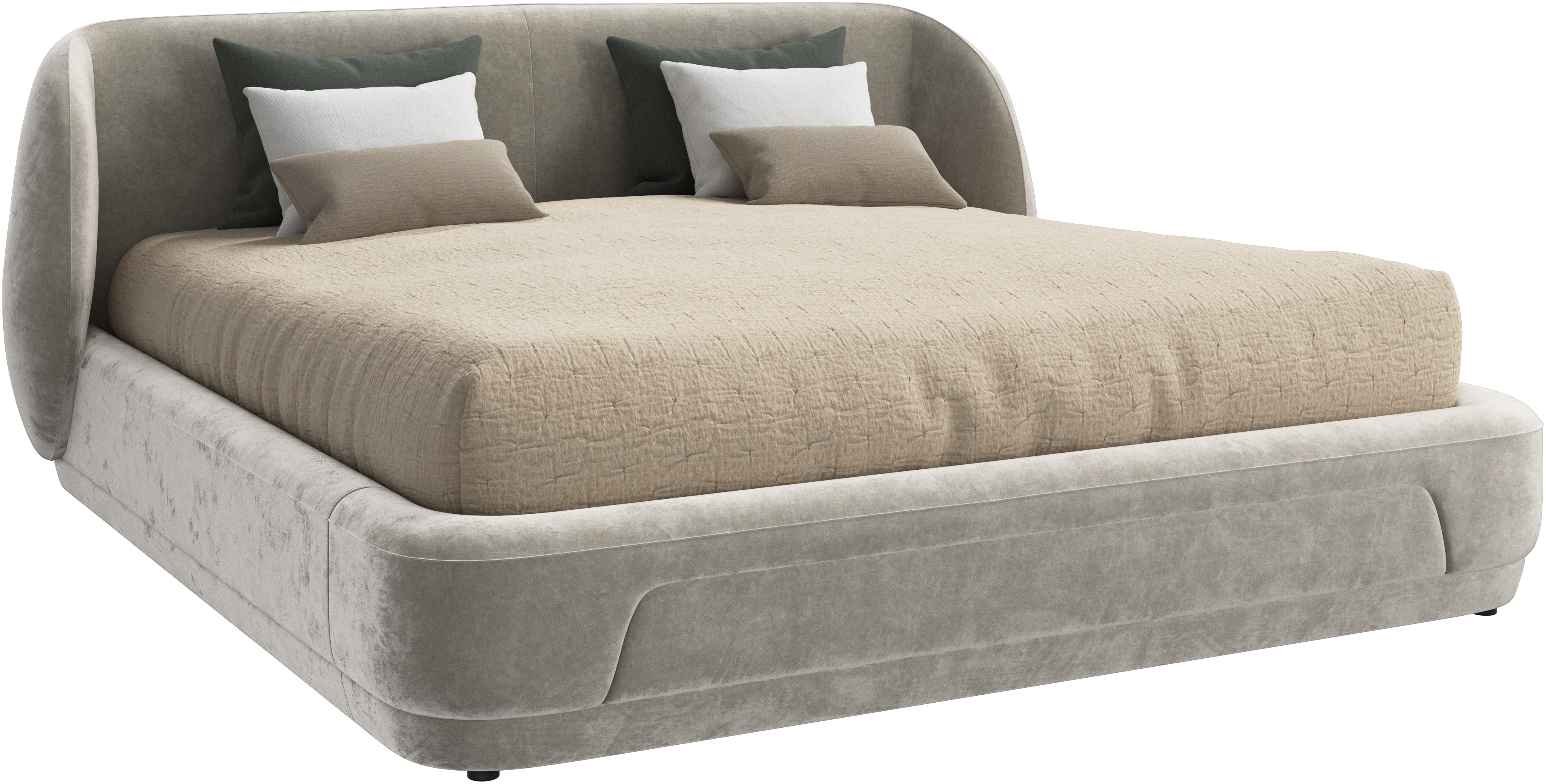 The Bolzano bed blends sculptural form with refined details to create a statement of calm and comfort.