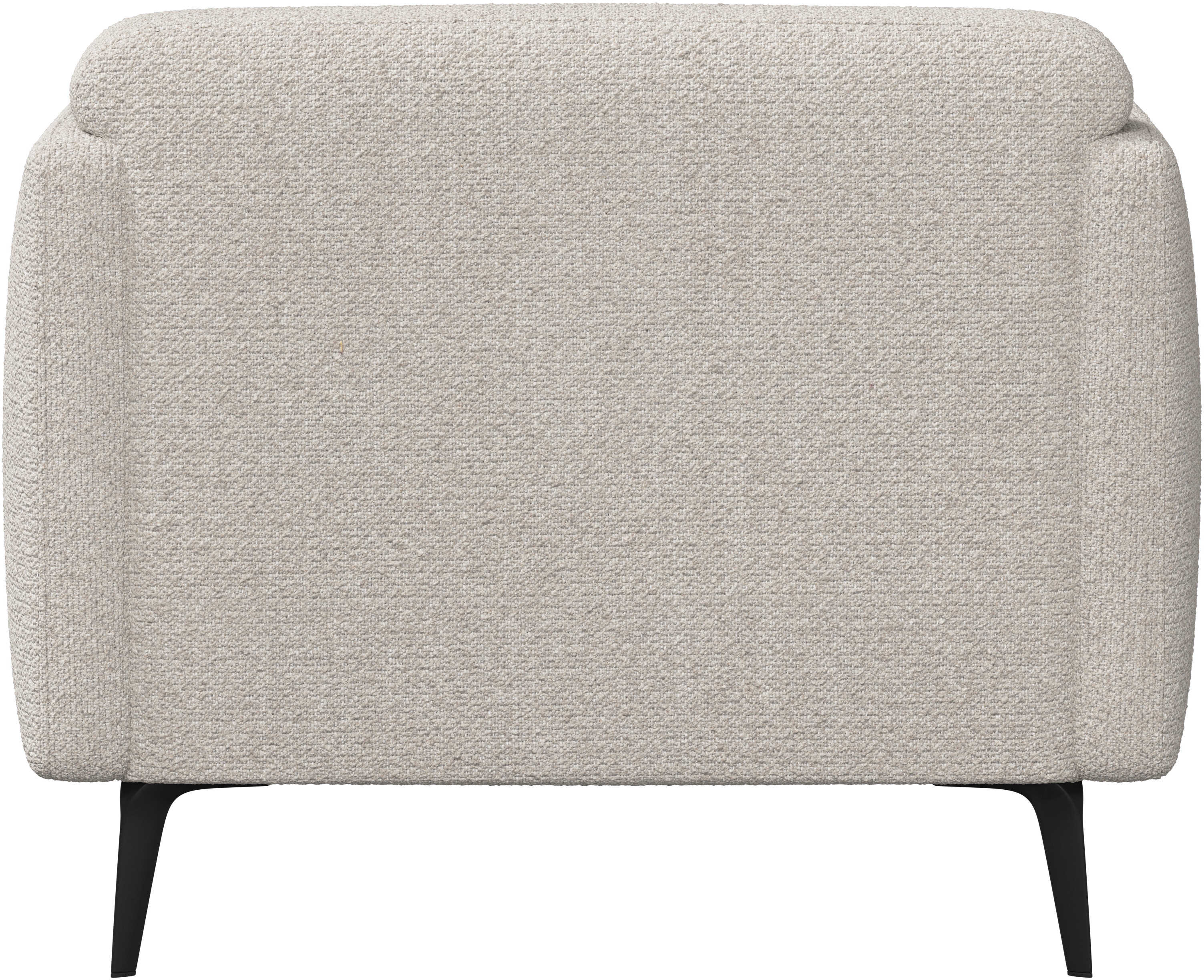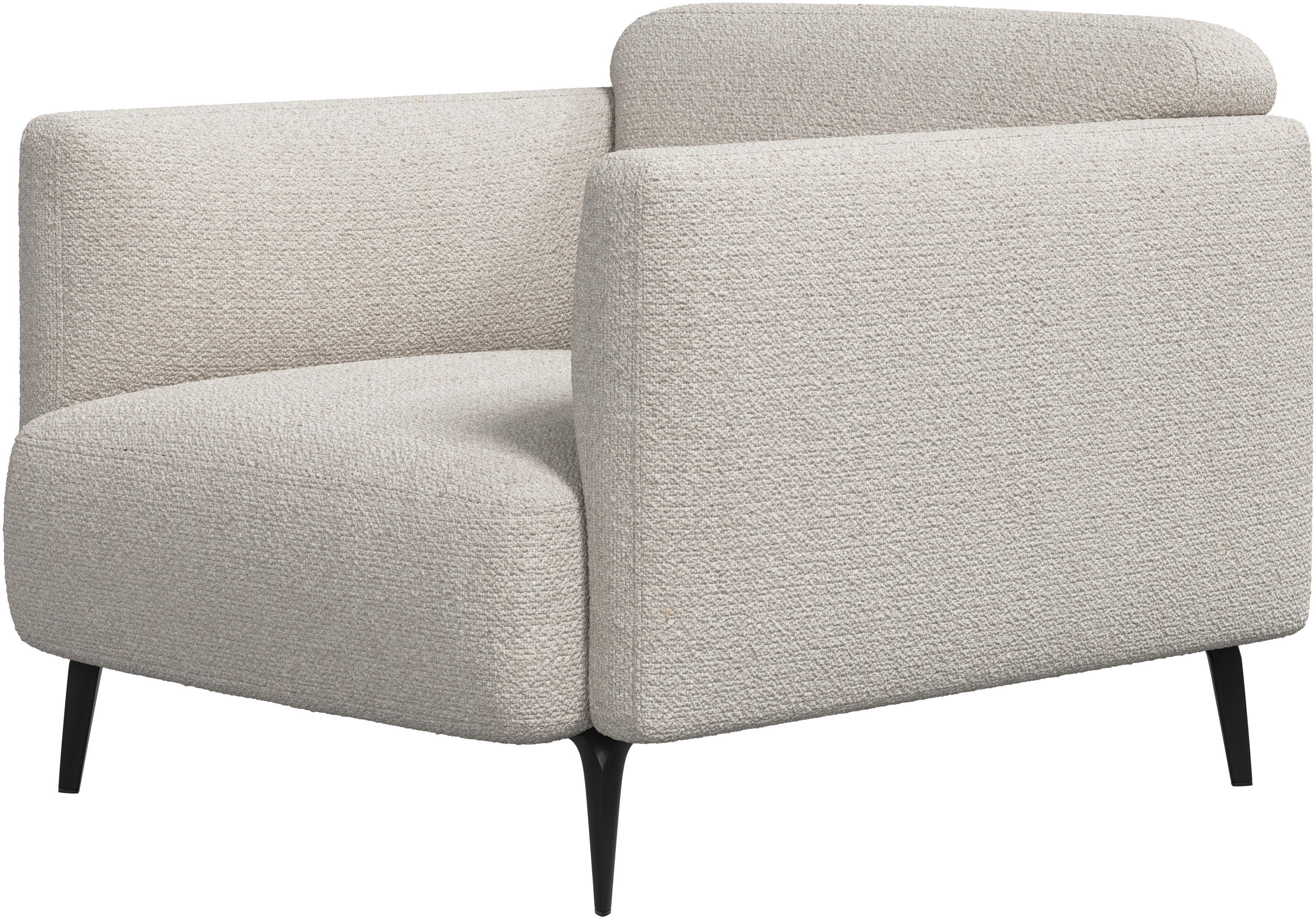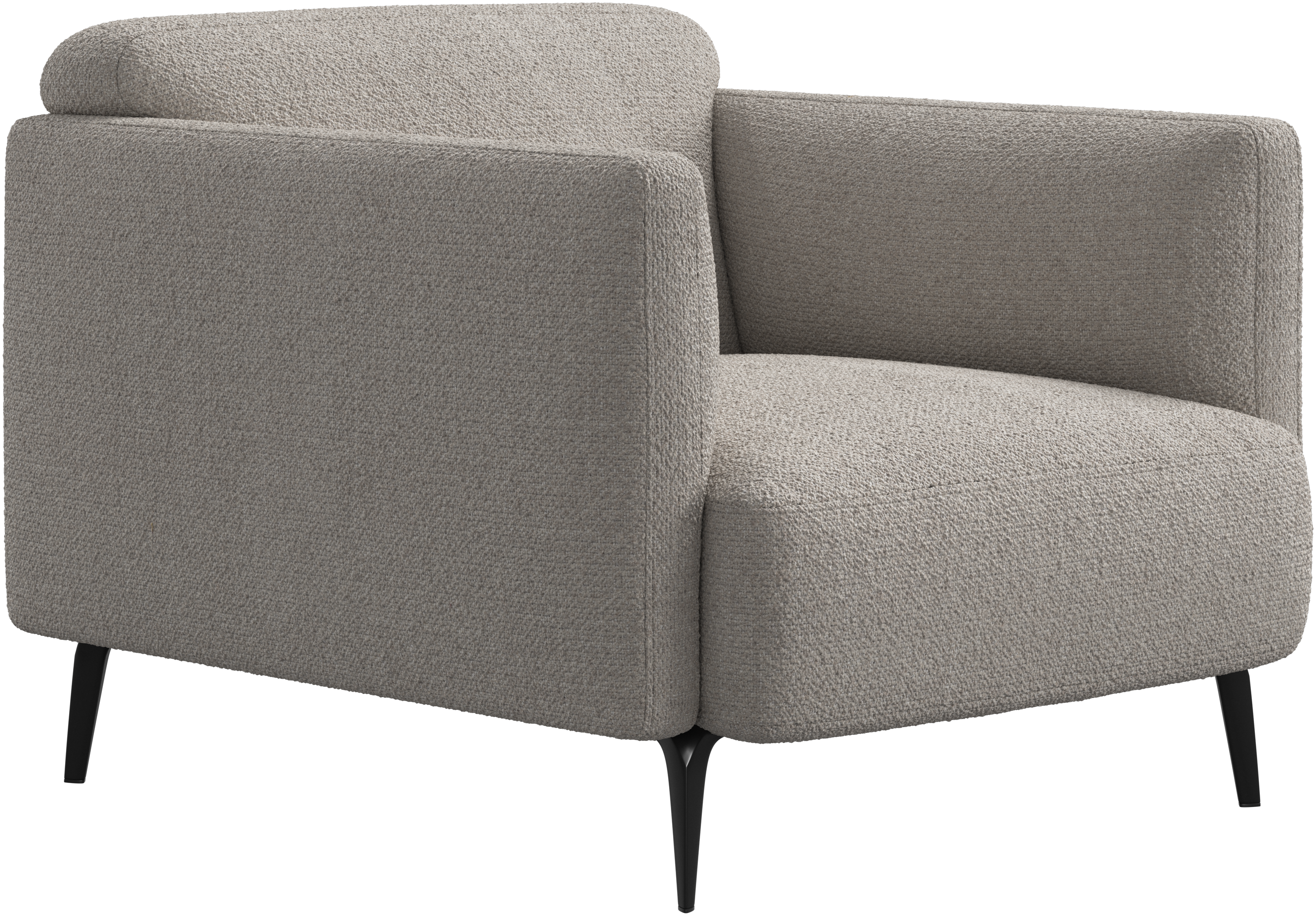 Apoios de braços estofados macios e cantos arredondados proporcionam uma sensação lounge.