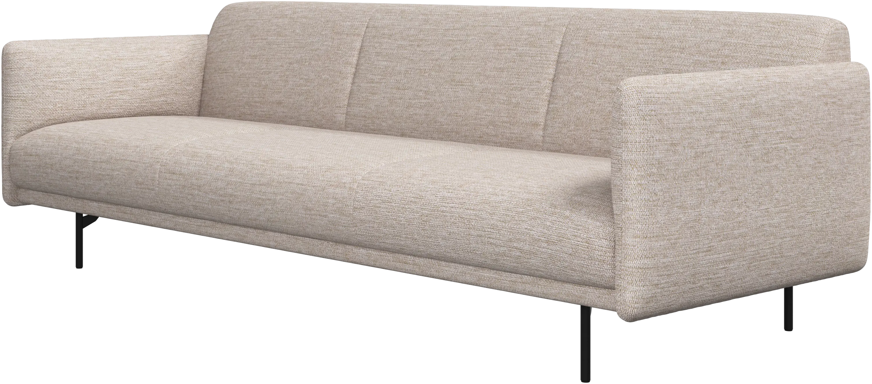 The Berne sofa is supported by a wooden frame and slim tube-shaped metal legs, allowing for a minimalist look and light, floating expression.