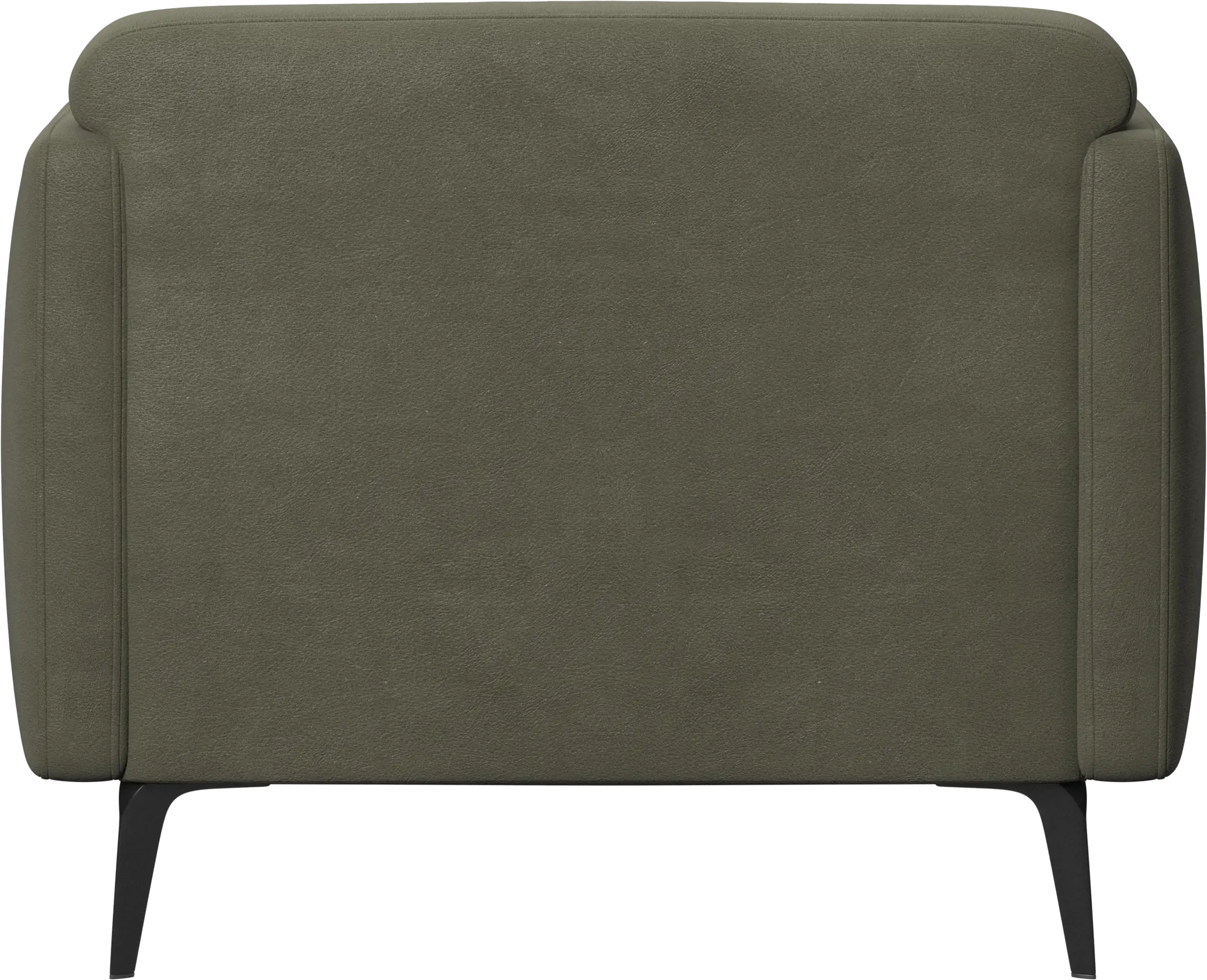 Soft upholstered armrests and rounded edges, gives a lounge feeling underlined by the low back.