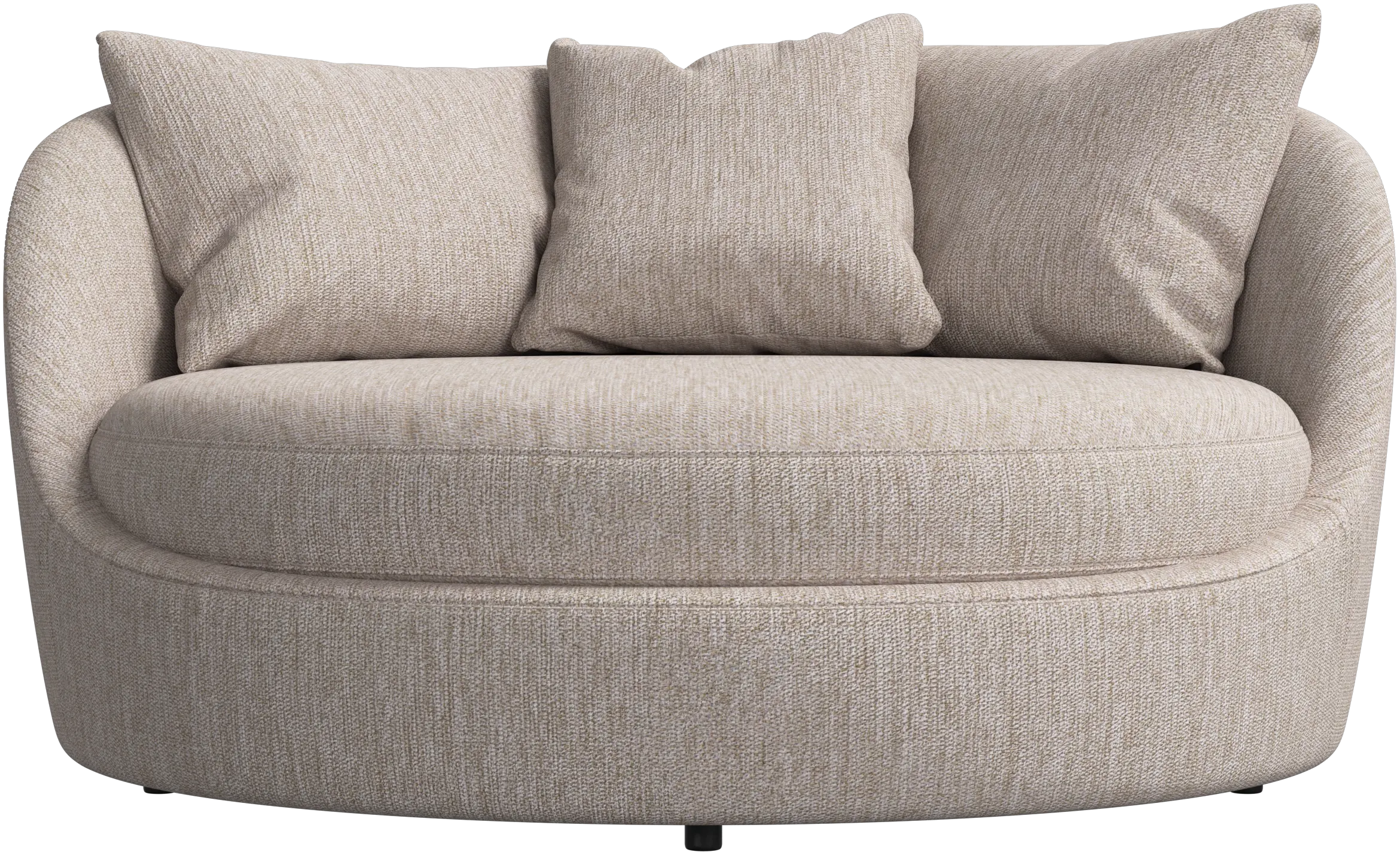 Med sin överdimensionerade, välkomnande form och tre mjuka ryggkuddar kan Ø vara en personlig fristad för vila eller en omslutande sits för att umgås med nära och kära.