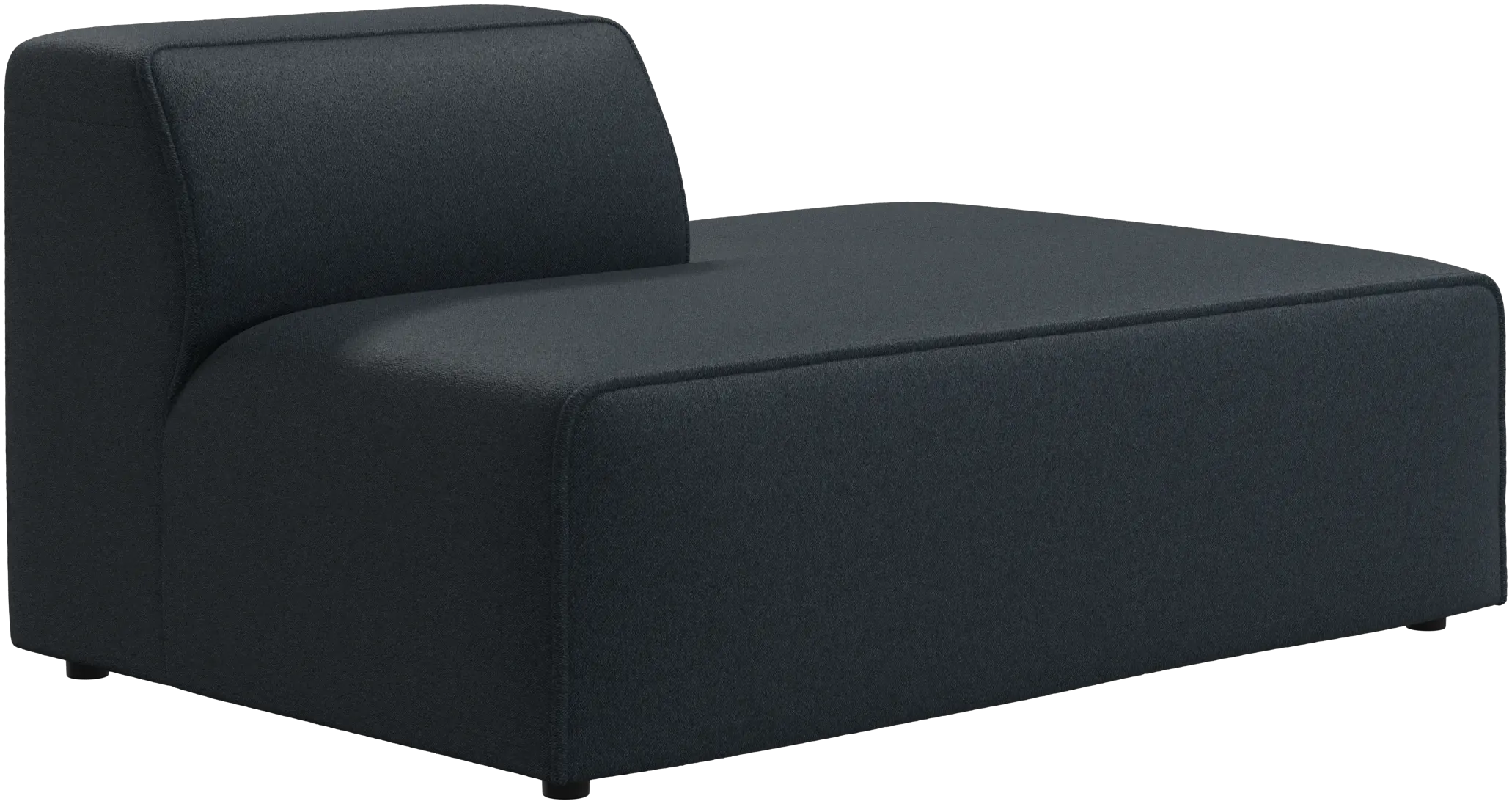 Benen är endast 5 cm höga och gör ett osynligt intryck, så att soffan nästan ser ut att sväva. Det ger formen en visuell lätthet.