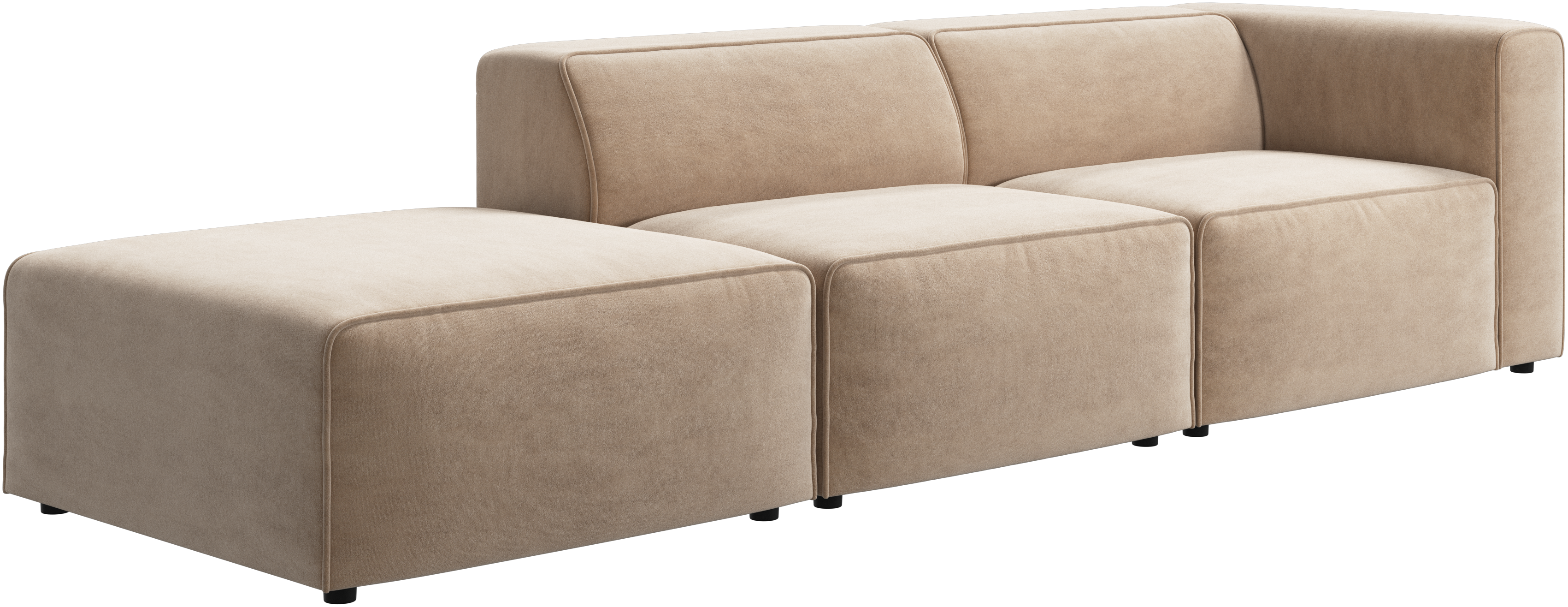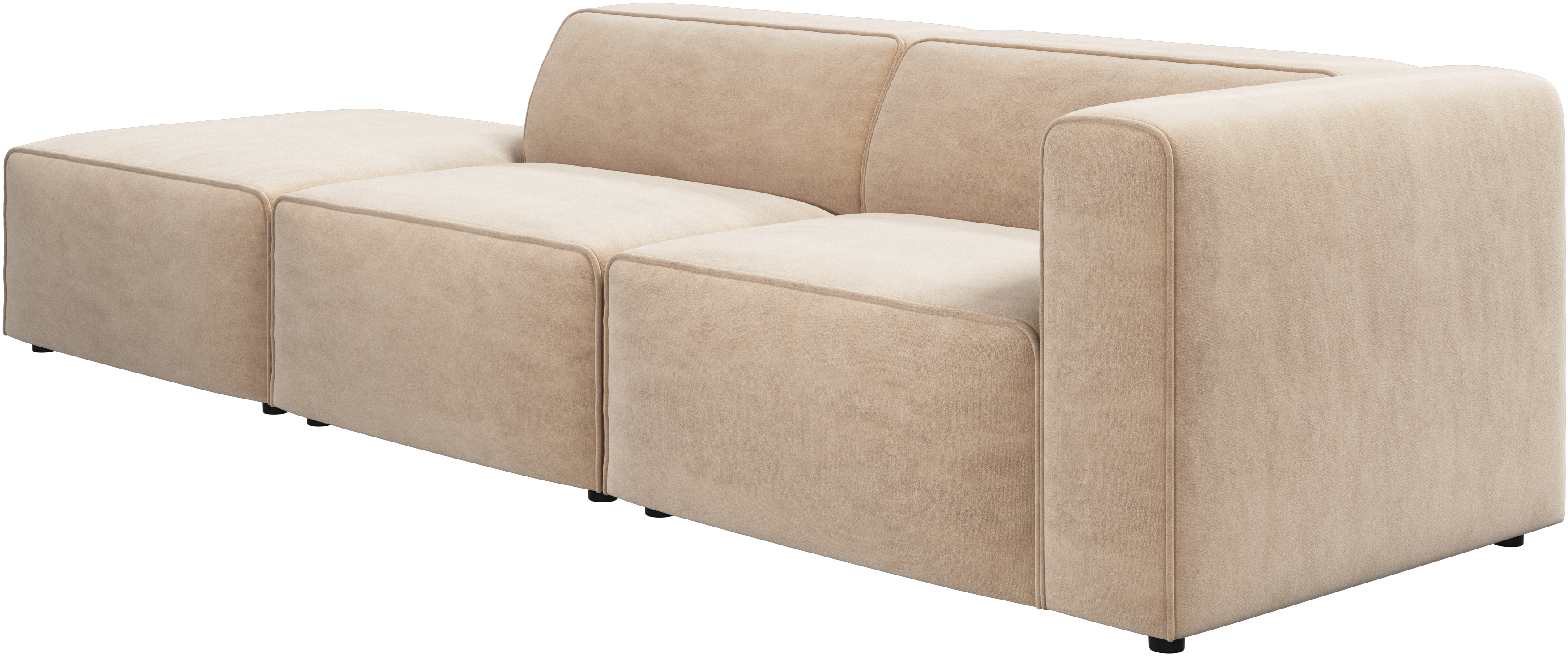 Carmo är ett modulsoffsystem som kan köpas som separata moduler. Modulerna säljs helklädda med kopplingsbeslag för att smidigt kunna monteras ihop eller isär.