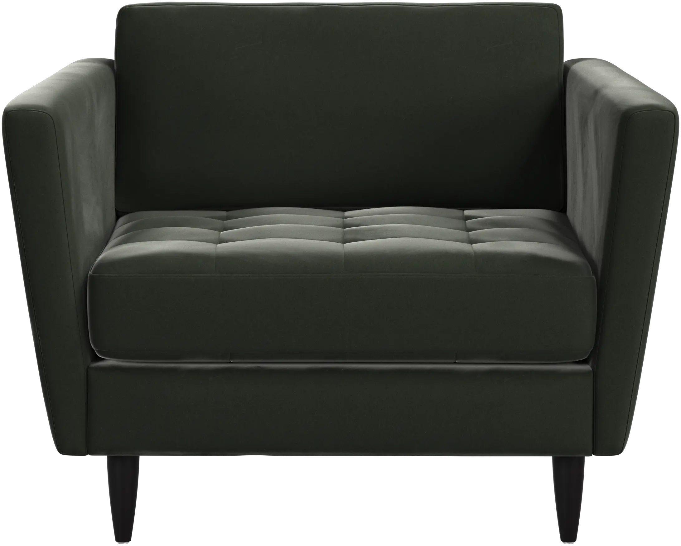Sittdynorna är fästa med kardborrband för att förhindra att de glider eller att ändarna fälls upp när man sitter i mitten. Det är en liten, men viktig detalj som bidrar till ett välordnat intryck och gör det lätt att dammsuga undertill.