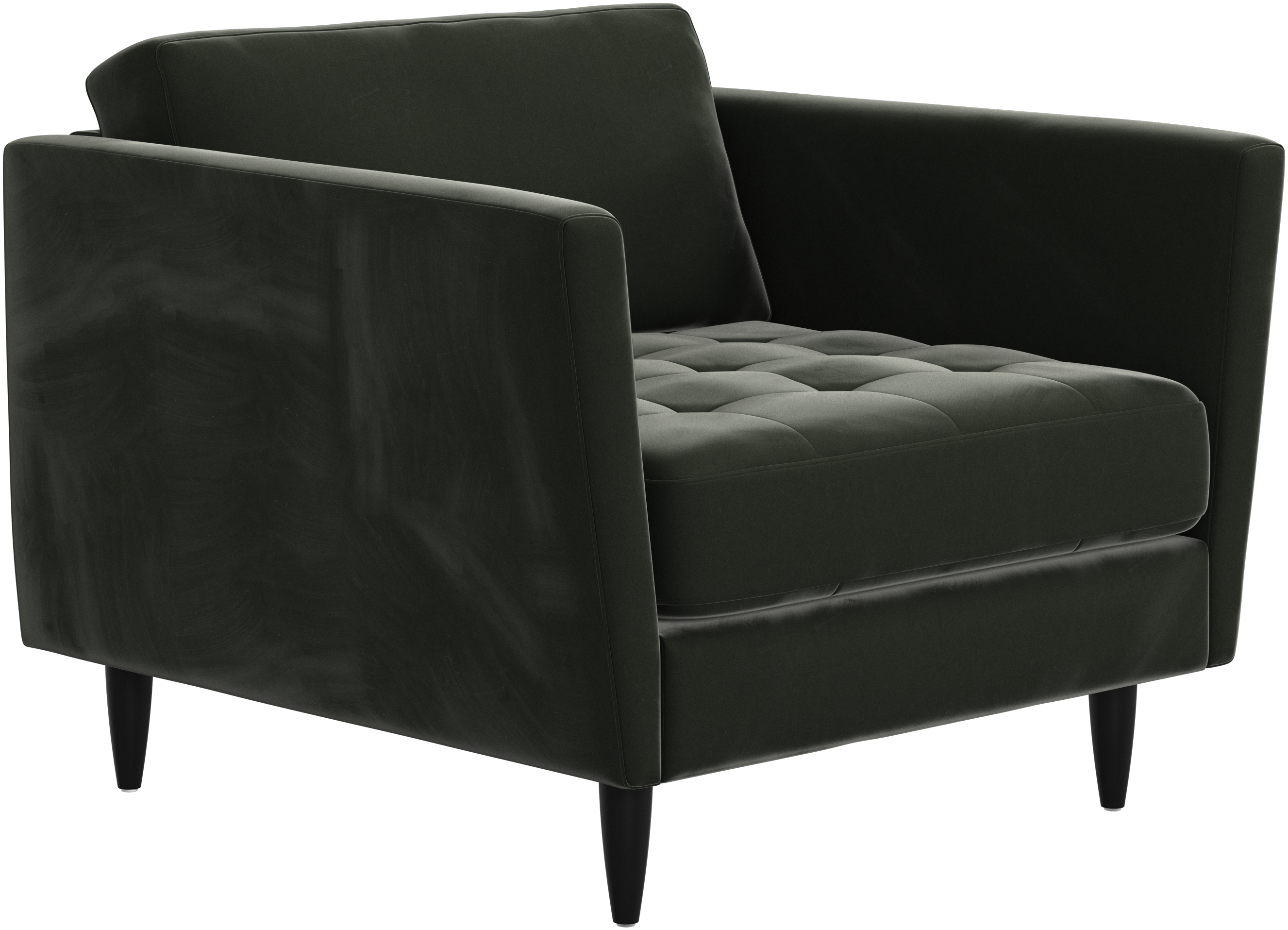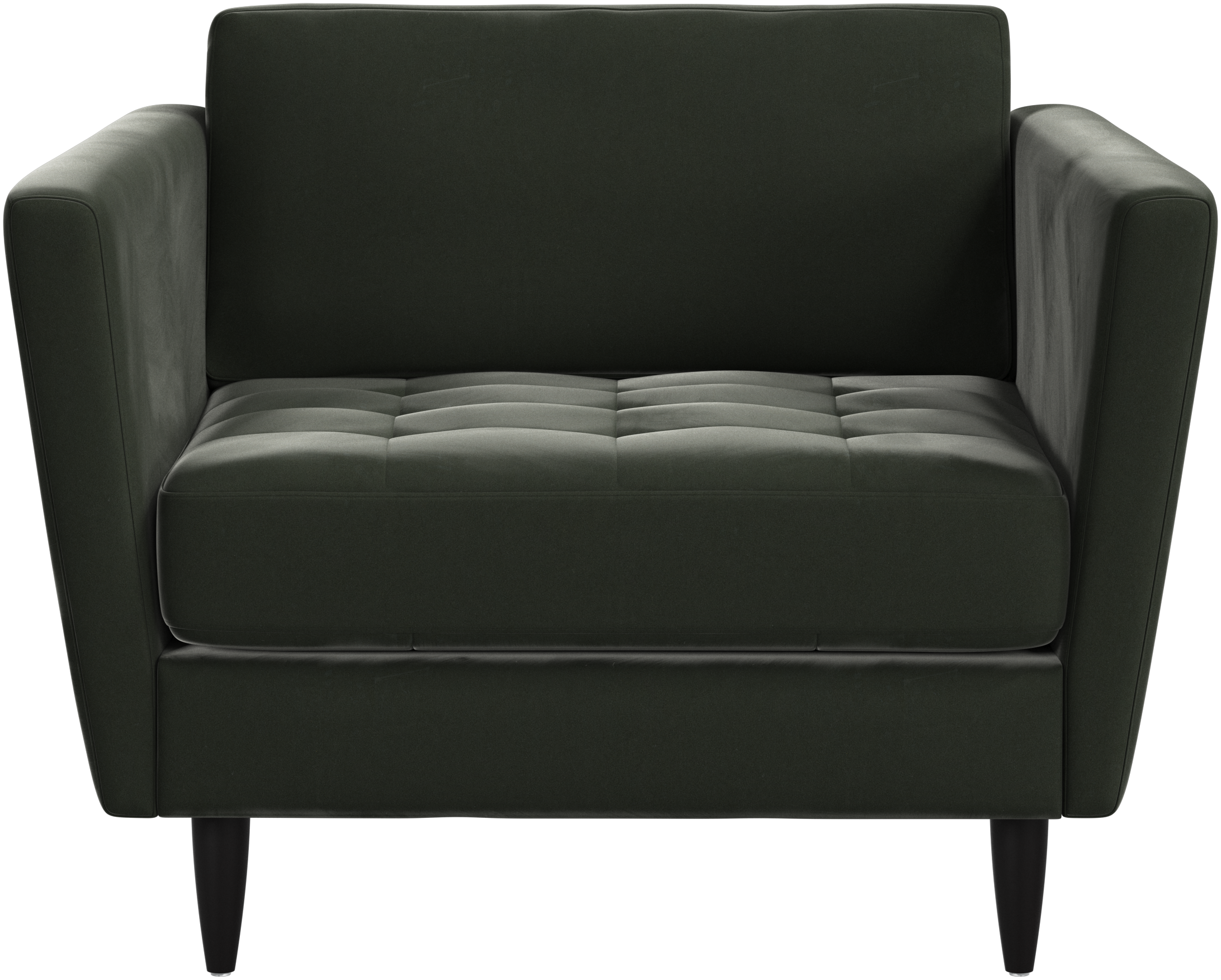 Sittdynorna är fästa med kardborrband för att förhindra att de glider eller att ändarna fälls upp när man sitter i mitten. Det är en liten, men viktig detalj som bidrar till ett välordnat intryck och gör det lätt att dammsuga undertill.