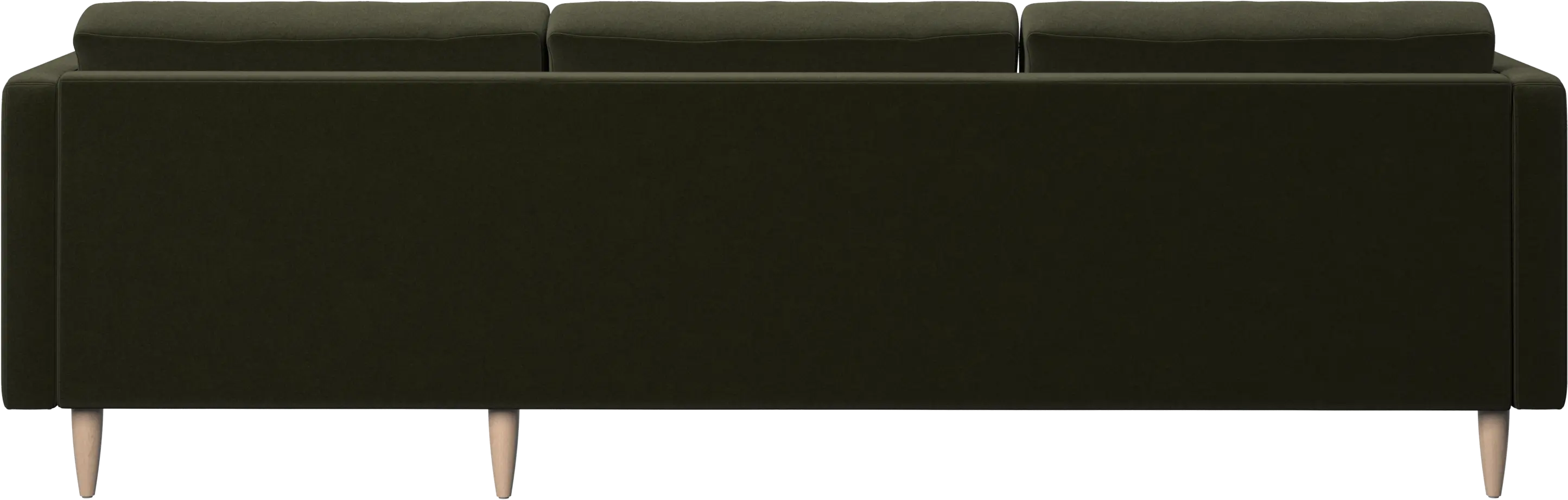 Sittdynorna är fästa med kardborrband för att förhindra att de glider eller att ändarna fälls upp när man sitter i mitten. Det är en liten, men viktig detalj som bidrar till ett välordnat intryck och gör det lätt att dammsuga undertill.