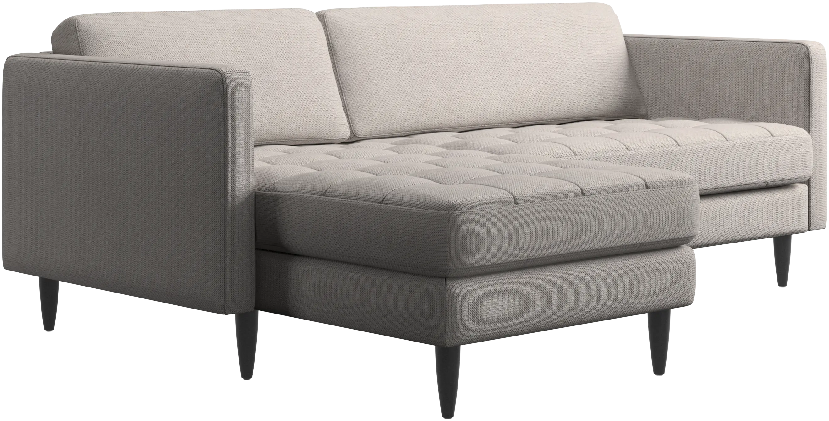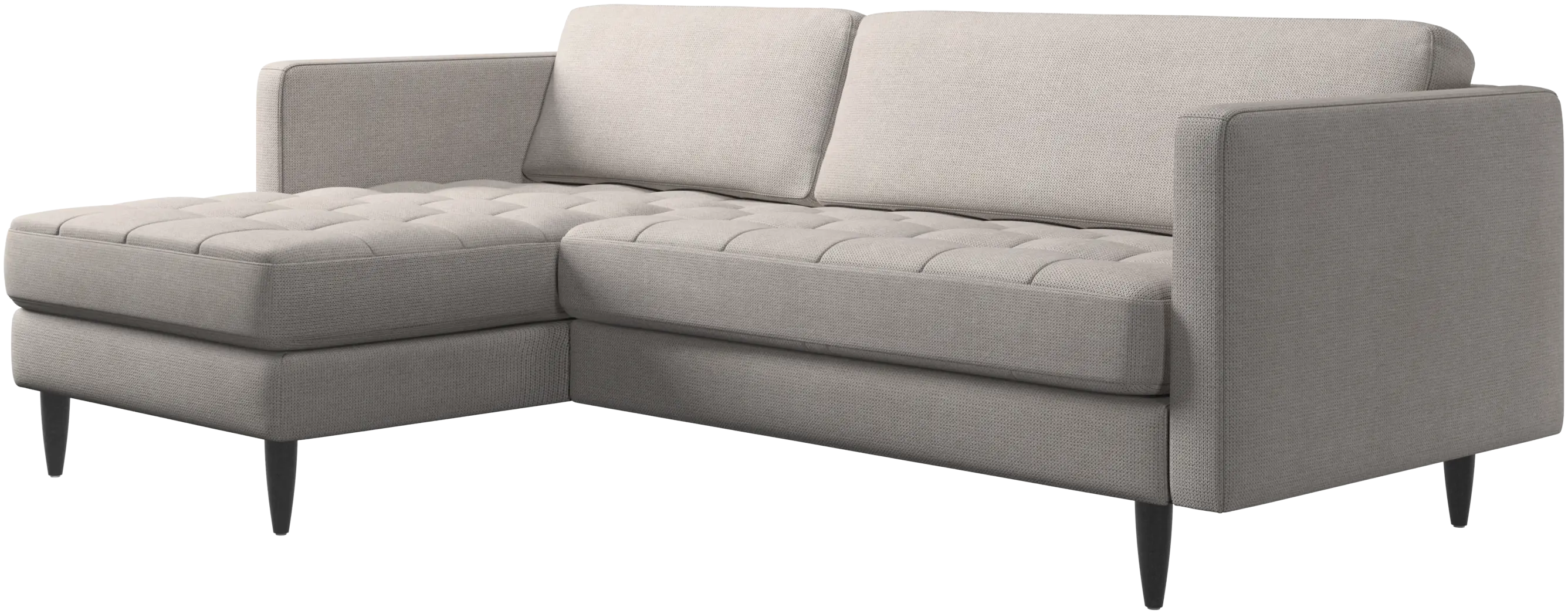 Lätthet och slanka proportioner gör soffan Osaka perfekt för mindre hem. Tack vare sin diskret feminina look och 60-talsstil gör soffan ändå ett starkt intryck. De vackra, tuftade sittkuddarna ger ett mjukt visuellt intryck och skapar en klassisk look i ditt vardagsrum. De klassiska, raka armstöden lyfter fram de rena linjerna och den skandinaviska stilen. Skaffa en bekväm soffa med vilmodul och du kommer aldrig att ångra dig. Lägg upp fötterna, sträck ut dig eller använd den som extra sittplats.