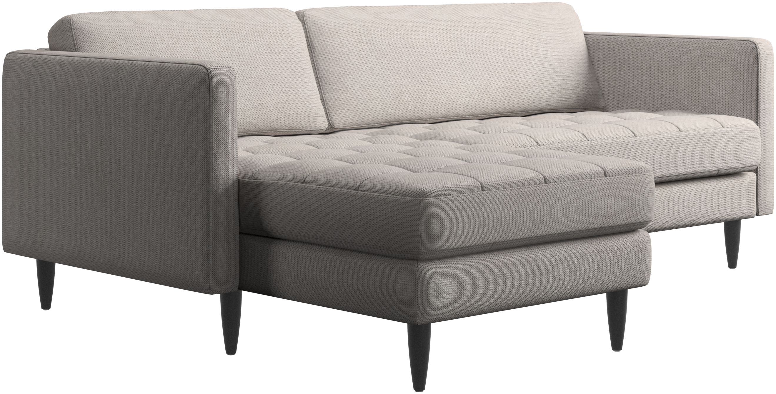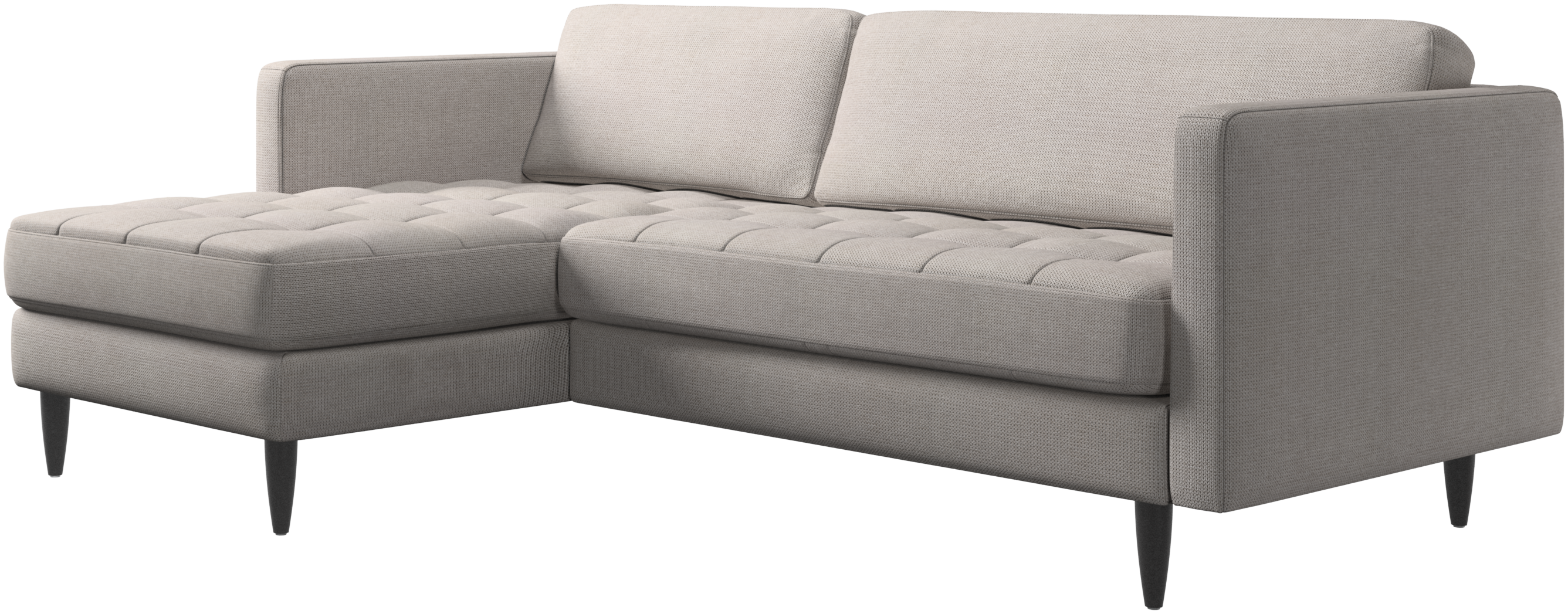 Lätthet och slanka proportioner gör soffan Osaka perfekt för mindre hem. Tack vare sin diskret feminina look och 60-talsstil gör soffan ändå ett starkt intryck. De vackra, tuftade sittkuddarna ger ett mjukt visuellt intryck och skapar en klassisk look i ditt vardagsrum. De klassiska, raka armstöden lyfter fram de rena linjerna och den skandinaviska stilen. Skaffa en bekväm soffa med vilmodul och du kommer aldrig att ångra dig. Lägg upp fötterna, sträck ut dig eller använd den som extra sittplats.