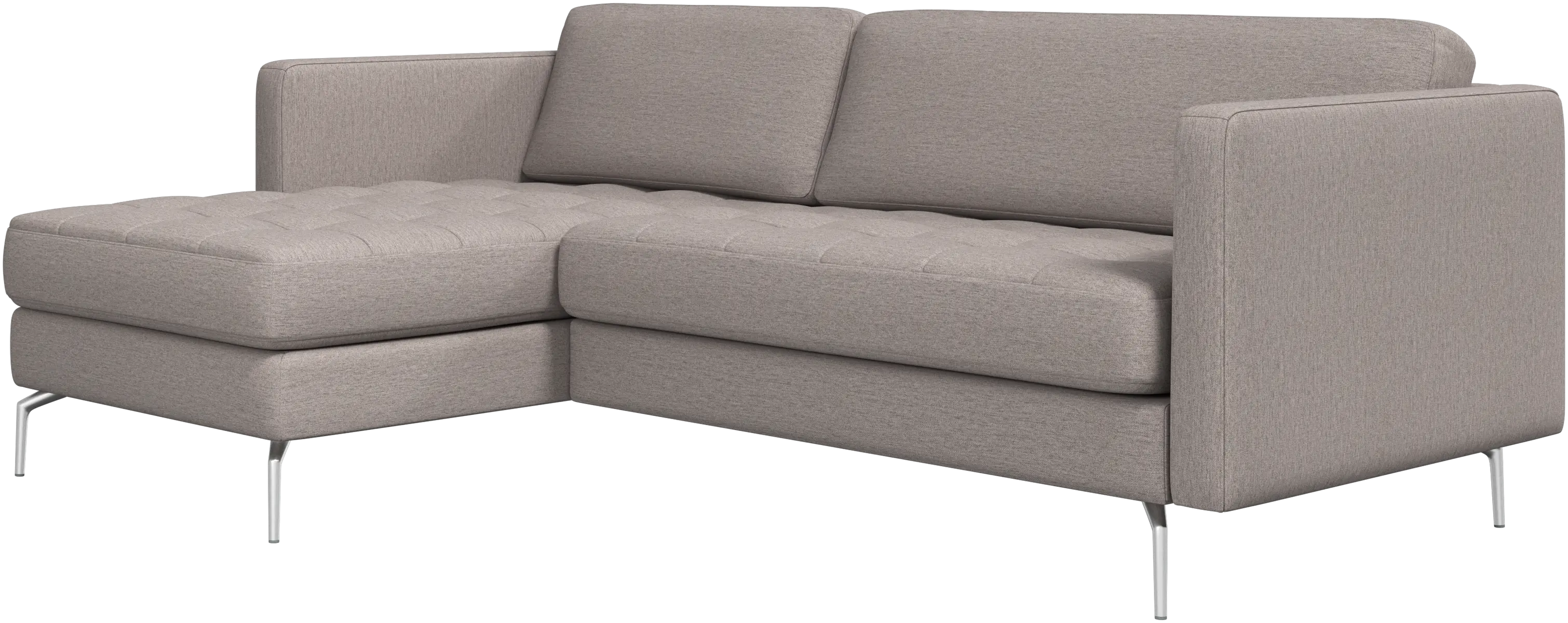 Lätthet och slanka proportioner gör soffan Osaka perfekt för mindre hem. Tack vare sin diskret feminina look och 60-talsstil gör soffan ändå ett starkt intryck. De vackra, tuftade sittkuddarna ger ett mjukt visuellt intryck och skapar en klassisk look i ditt vardagsrum. De klassiska, raka armstöden lyfter fram de rena linjerna och den skandinaviska stilen. Skaffa en bekväm soffa med vilmodul och du kommer aldrig att ångra dig. Lägg upp fötterna, sträck ut dig eller använd den som extra sittplats.