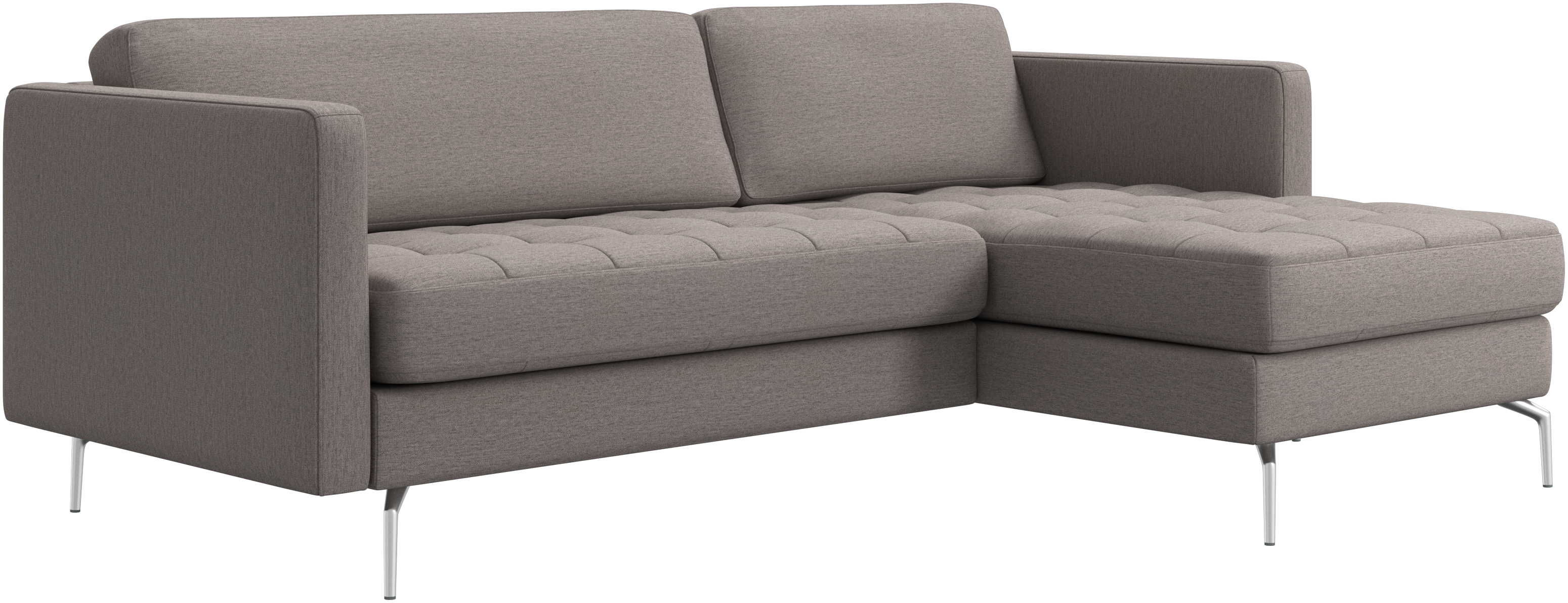 Lätthet och slanka proportioner gör soffan Osaka perfekt för mindre hem. Tack vare sin diskret feminina look och 60-talsstil gör soffan ändå ett starkt intryck. De vackra, tuftade sittkuddarna ger ett mjukt visuellt intryck och skapar en klassisk look i ditt vardagsrum. De klassiska, raka armstöden lyfter fram de rena linjerna och den skandinaviska stilen. Skaffa en bekväm soffa med vilmodul och du kommer aldrig att ångra dig. Lägg upp fötterna, sträck ut dig eller använd den som extra sittplats.
