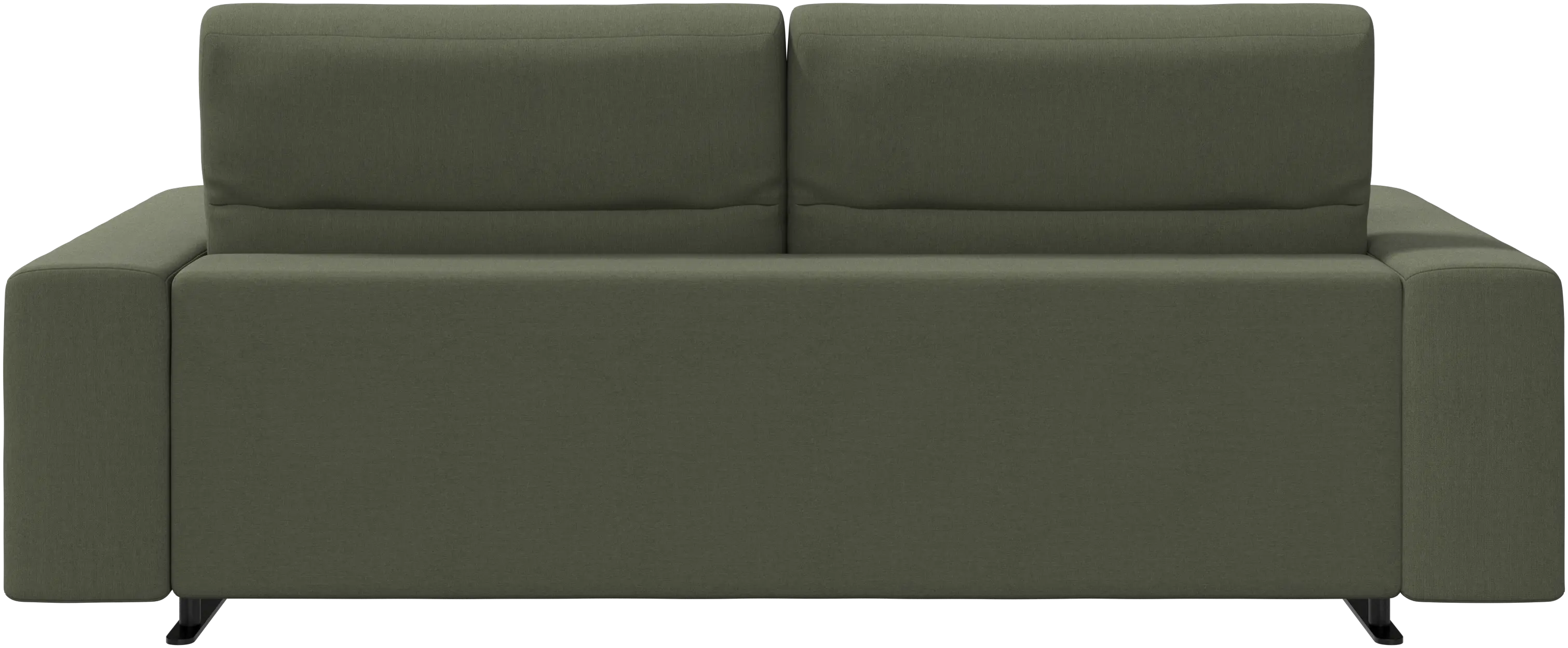 Sittdynans fullständiga djup är 107 cm, vilket är tillräckligt brett för att sova på. För att garantera optimalt stöd trots den djupa sittytan finns det en ländryggskudde och en prydnadskudde i matchande tyg- och läderklädsel.