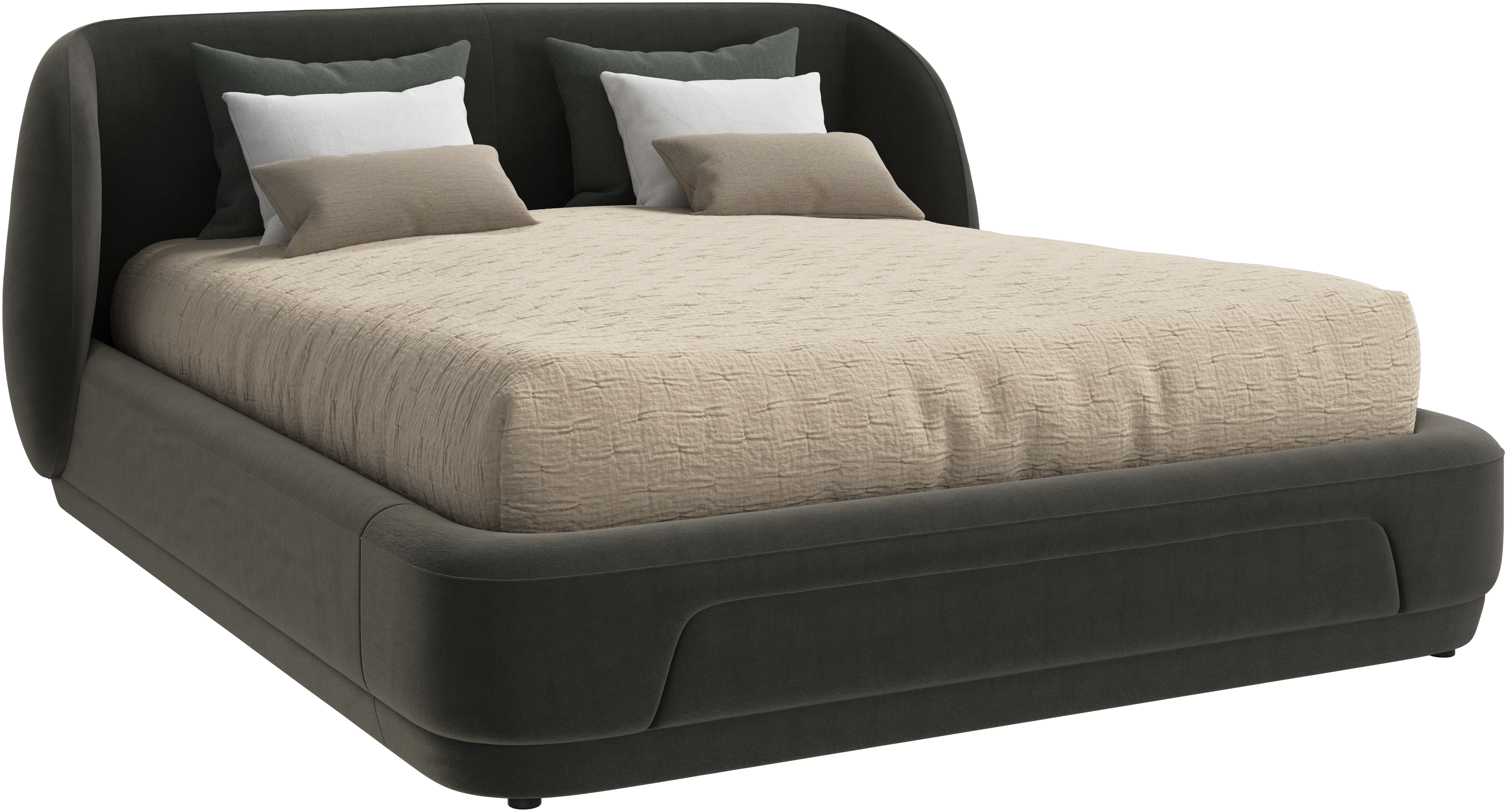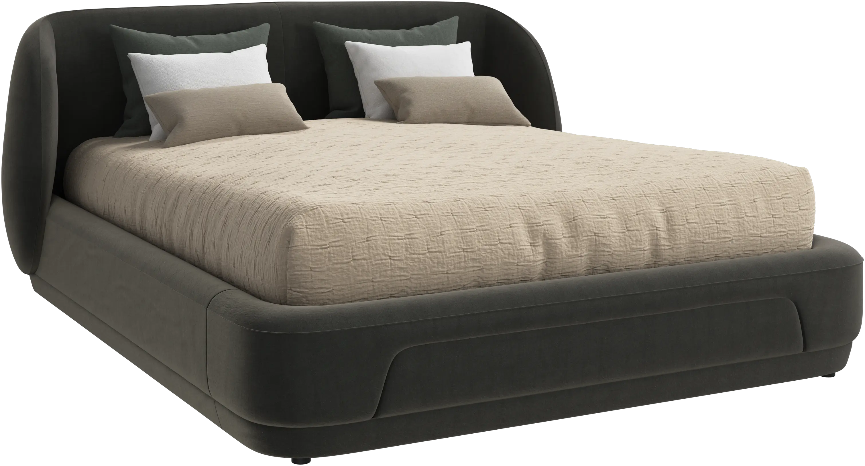The Bolzano bed blends sculptural form with refined details to create a statement of calm and comfort.