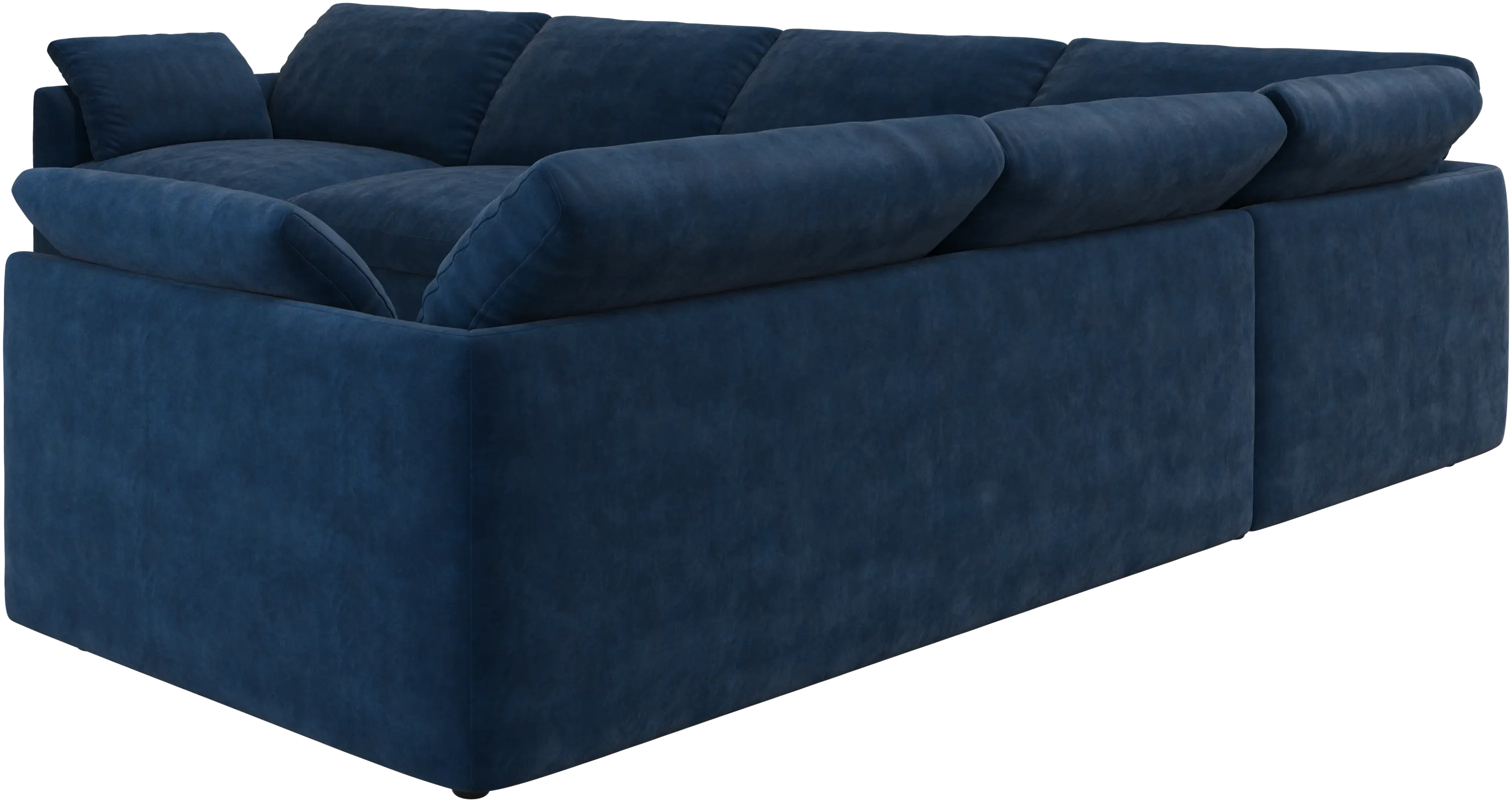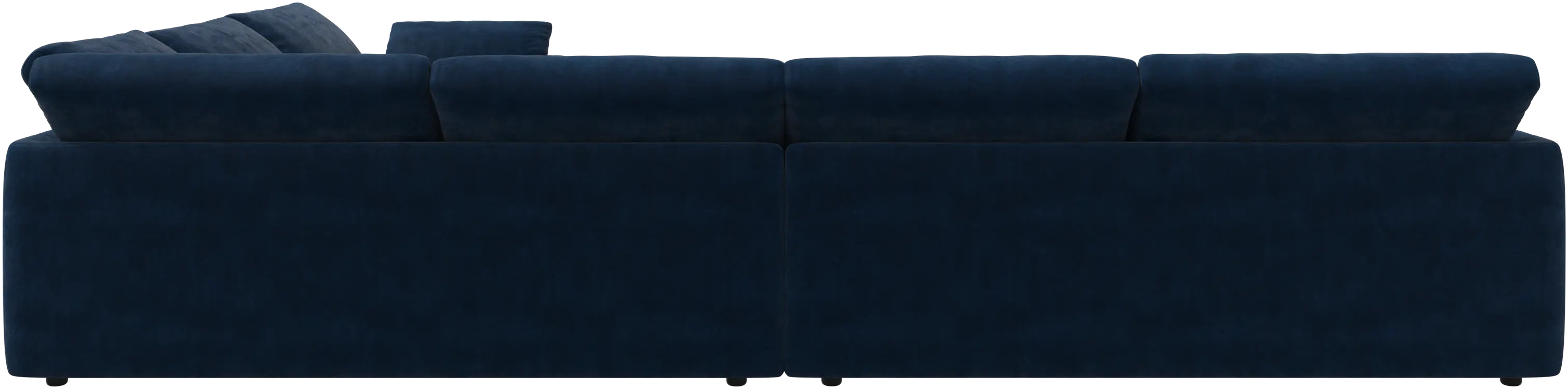 De mjukt rynkade ryggkuddarna skapar en skulptural och välkomnande silhuett som känns både luftig och inbjudande.