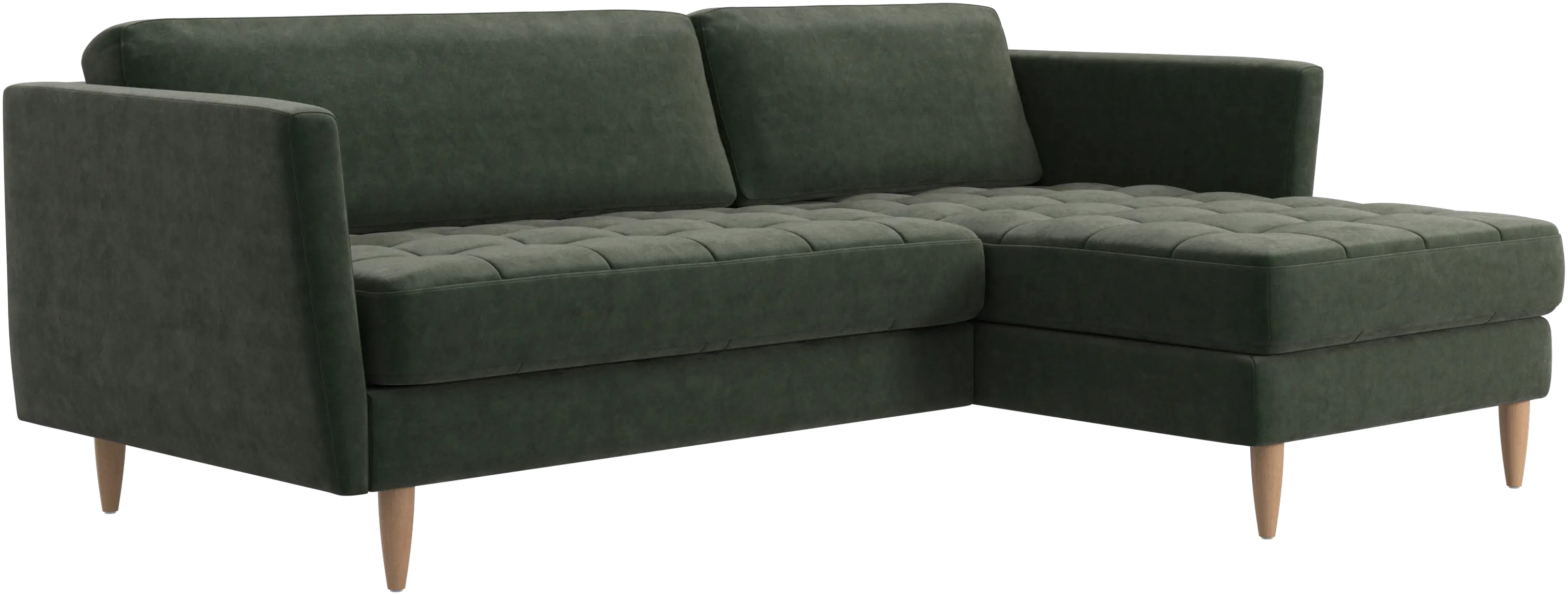 Sittdynorna är fästa med kardborrband för att förhindra att de glider eller att ändarna fälls upp när man sitter i mitten. Det är en liten, men viktig detalj som bidrar till ett välordnat intryck och gör det lätt att dammsuga undertill.