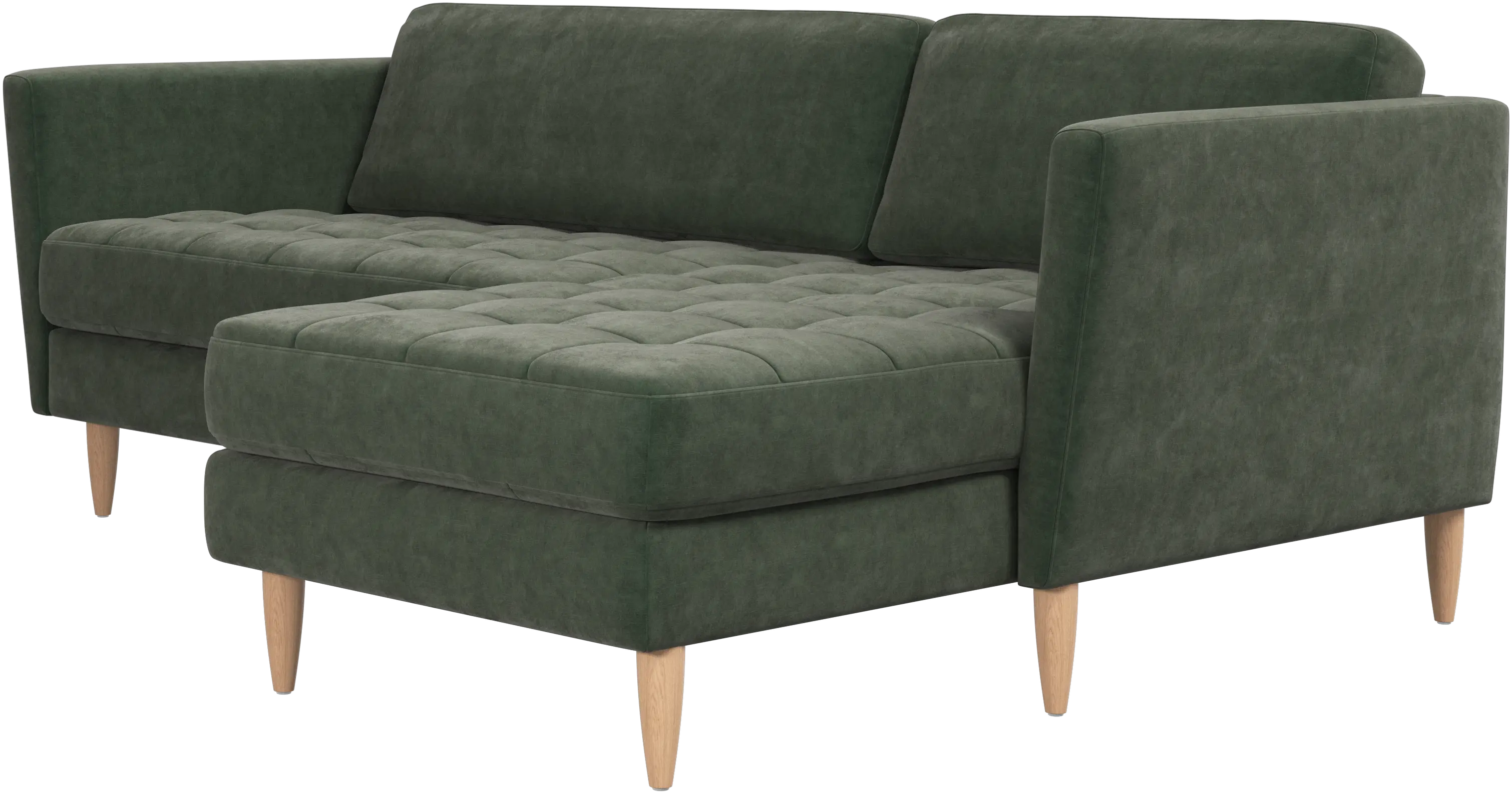 Lätthet och slanka proportioner gör soffan Osaka perfekt för mindre hem. Tack vare sin diskret feminina look och 60-talsstil gör soffan ändå ett starkt intryck. De vackra, tuftade sittkuddarna ger ett mjukt visuellt intryck och skapar en klassisk look i ditt vardagsrum. Vinklade armstöd ger soffan en modern, unik look och öppnar upp den mot övriga ytor i rummet. Skaffa en bekväm soffa med vilmodul och du kommer aldrig att ångra dig. Lägg upp fötterna, sträck ut dig eller använd den som extra sittplats.