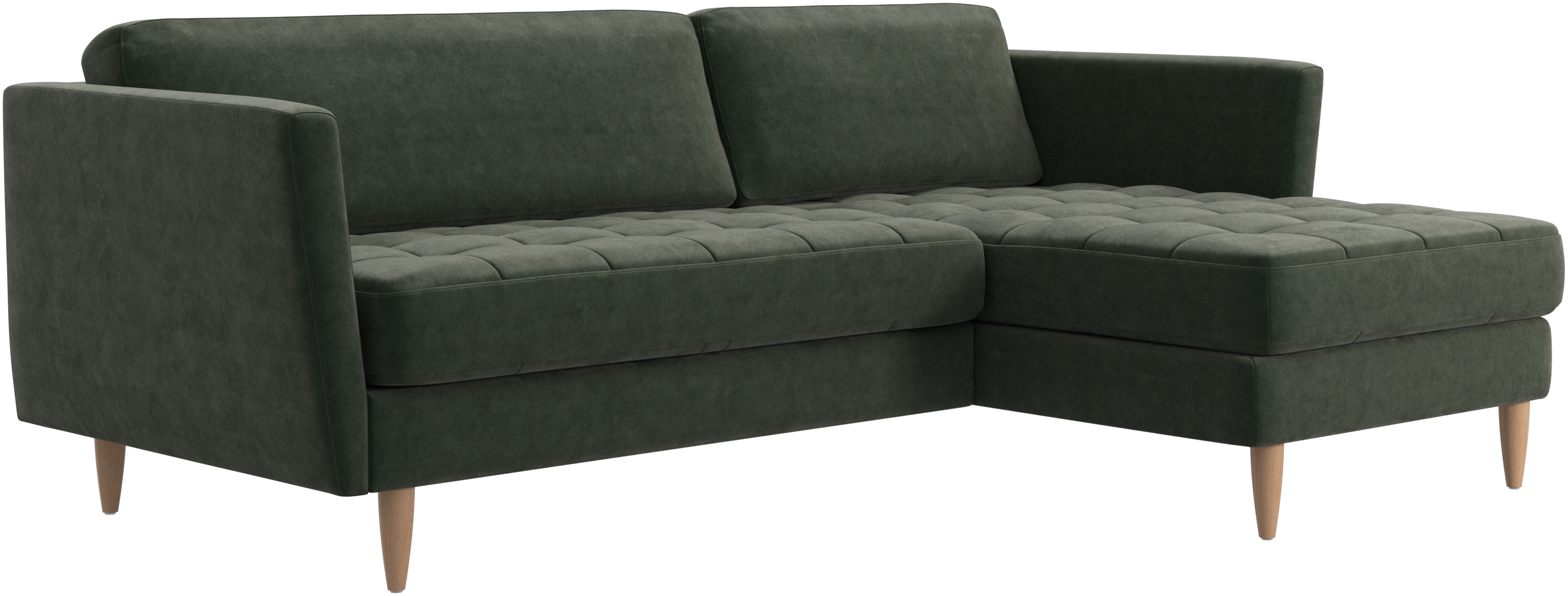 Sittdynorna är fästa med kardborrband för att förhindra att de glider eller att ändarna fälls upp när man sitter i mitten. Det är en liten, men viktig detalj som bidrar till ett välordnat intryck och gör det lätt att dammsuga undertill.