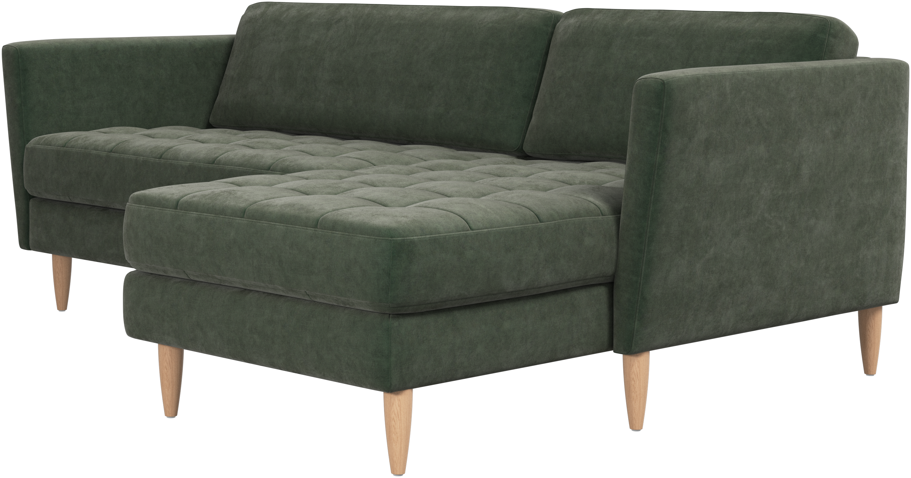Lätthet och slanka proportioner gör soffan Osaka perfekt för mindre hem. Tack vare sin diskret feminina look och 60-talsstil gör soffan ändå ett starkt intryck. De vackra, tuftade sittkuddarna ger ett mjukt visuellt intryck och skapar en klassisk look i ditt vardagsrum. Vinklade armstöd ger soffan en modern, unik look och öppnar upp den mot övriga ytor i rummet. Skaffa en bekväm soffa med vilmodul och du kommer aldrig att ångra dig. Lägg upp fötterna, sträck ut dig eller använd den som extra sittplats.