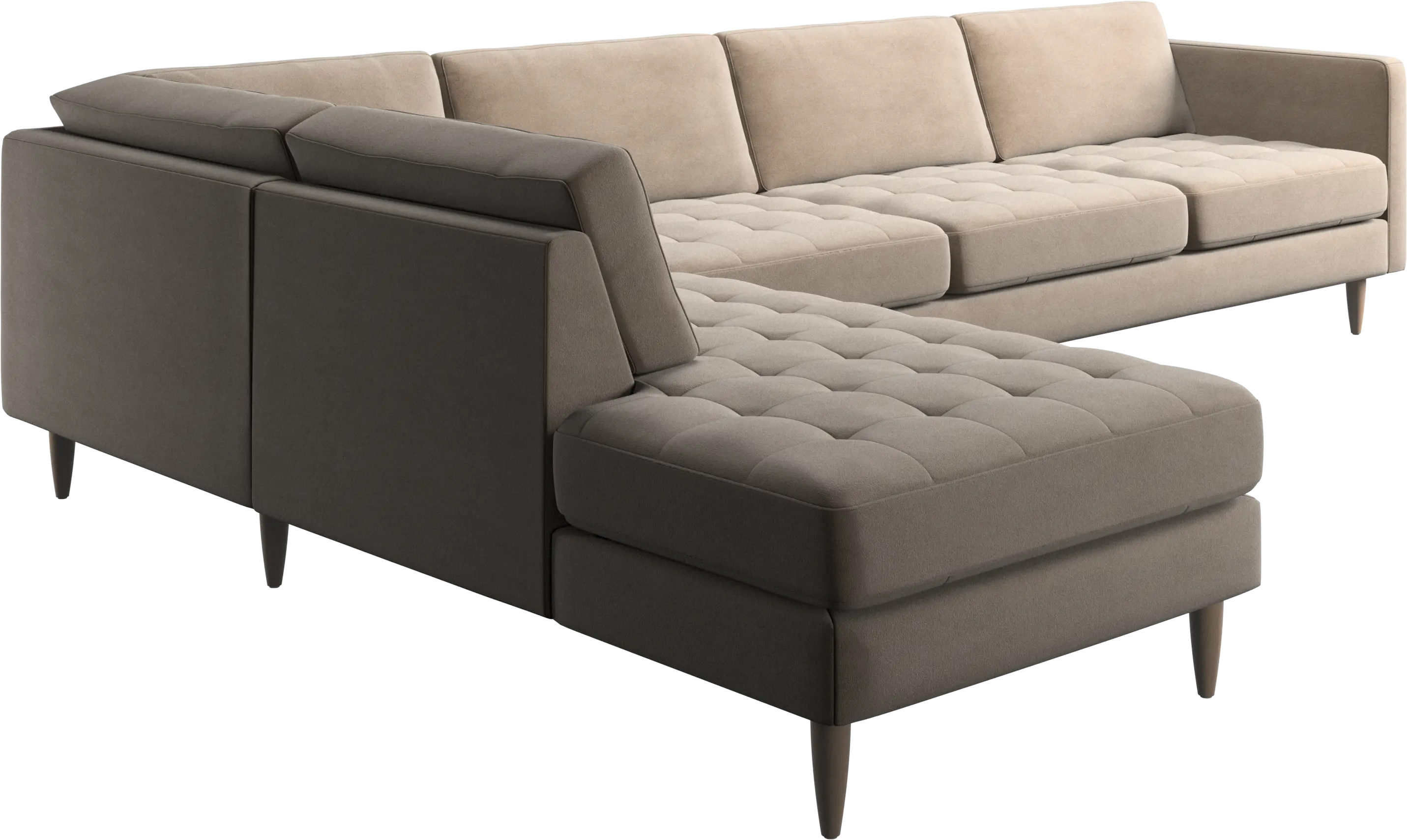 Lätthet och slanka proportioner gör soffan Osaka perfekt för mindre hem. Tack vare sin diskret feminina look och 60-talsstil gör soffan ändå ett starkt intryck. De vackra, tuftade sittkuddarna ger ett mjukt visuellt intryck och skapar en klassisk look i ditt vardagsrum. De klassiska, raka armstöden lyfter fram de rena linjerna och den skandinaviska stilen. Med gott om plats för hela familjen blir denna hörnsoffa vardagsrummets stora favorit. Det öppna avslutet skapar en dynamisk och välkomnande atmosfär – perfekt för multifunktionella ytor i öppna planlösningar.