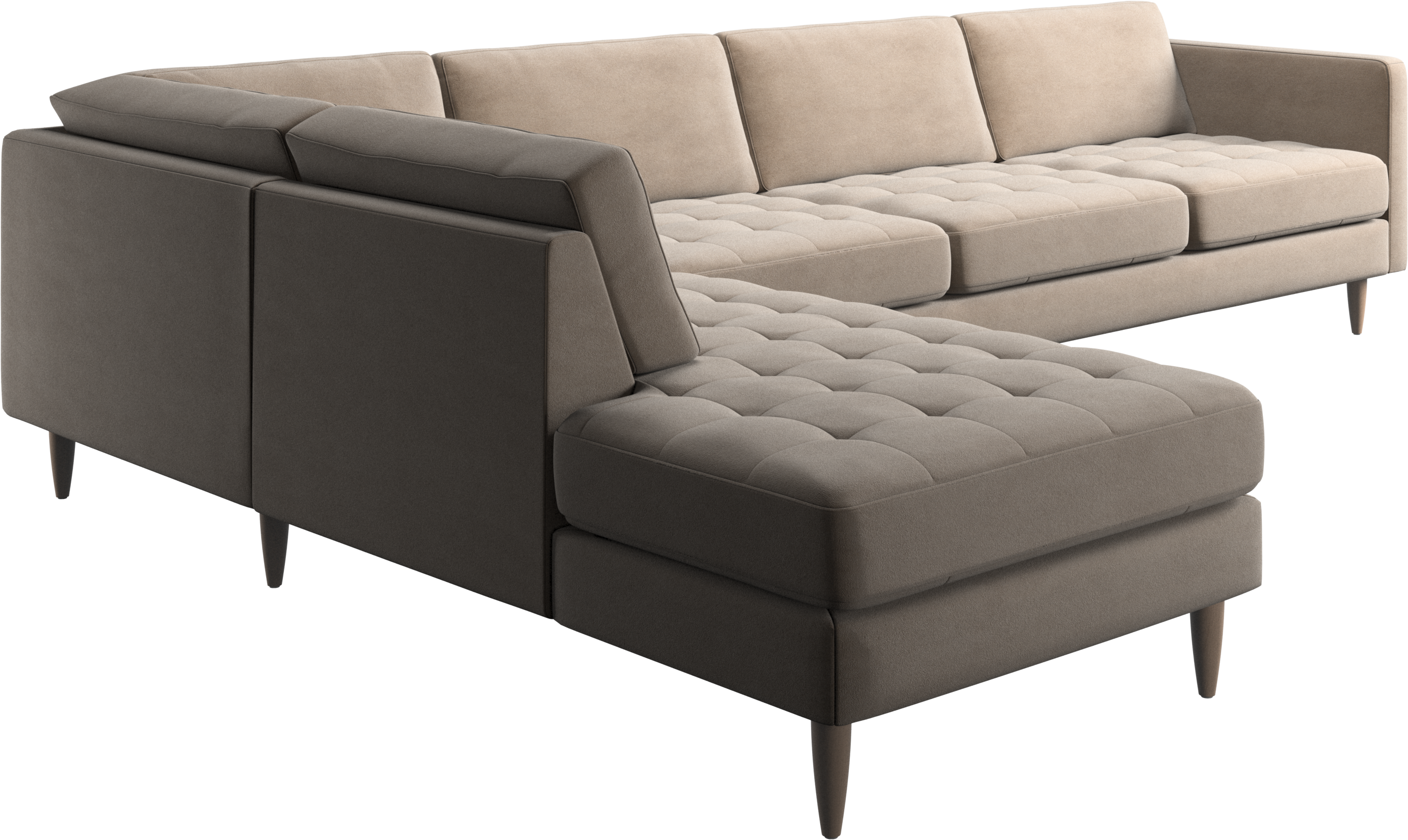 Lätthet och slanka proportioner gör soffan Osaka perfekt för mindre hem. Tack vare sin diskret feminina look och 60-talsstil gör soffan ändå ett starkt intryck. De vackra, tuftade sittkuddarna ger ett mjukt visuellt intryck och skapar en klassisk look i ditt vardagsrum. De klassiska, raka armstöden lyfter fram de rena linjerna och den skandinaviska stilen. Med gott om plats för hela familjen blir denna hörnsoffa vardagsrummets stora favorit. Det öppna avslutet skapar en dynamisk och välkomnande atmosfär – perfekt för multifunktionella ytor i öppna planlösningar.
