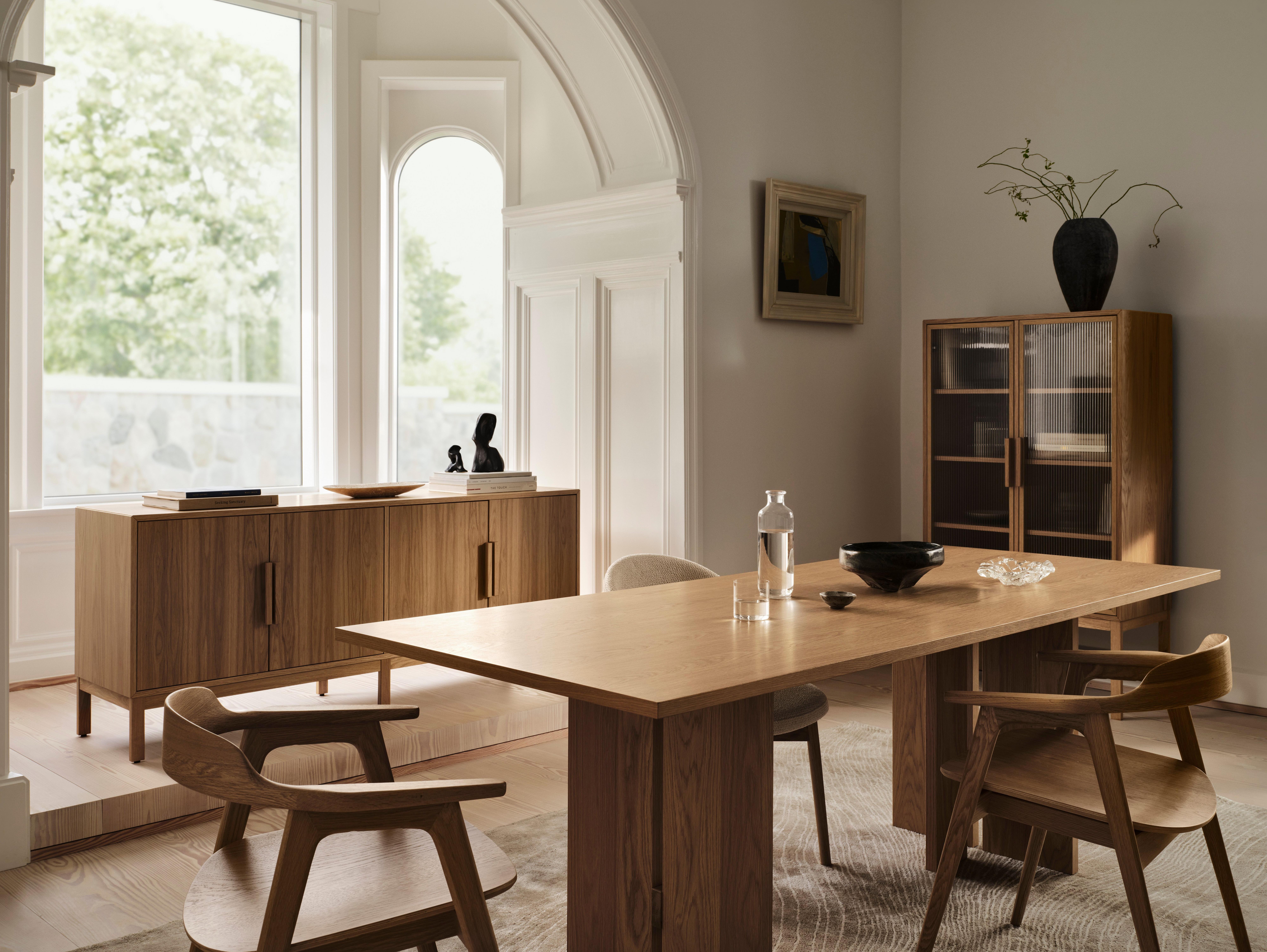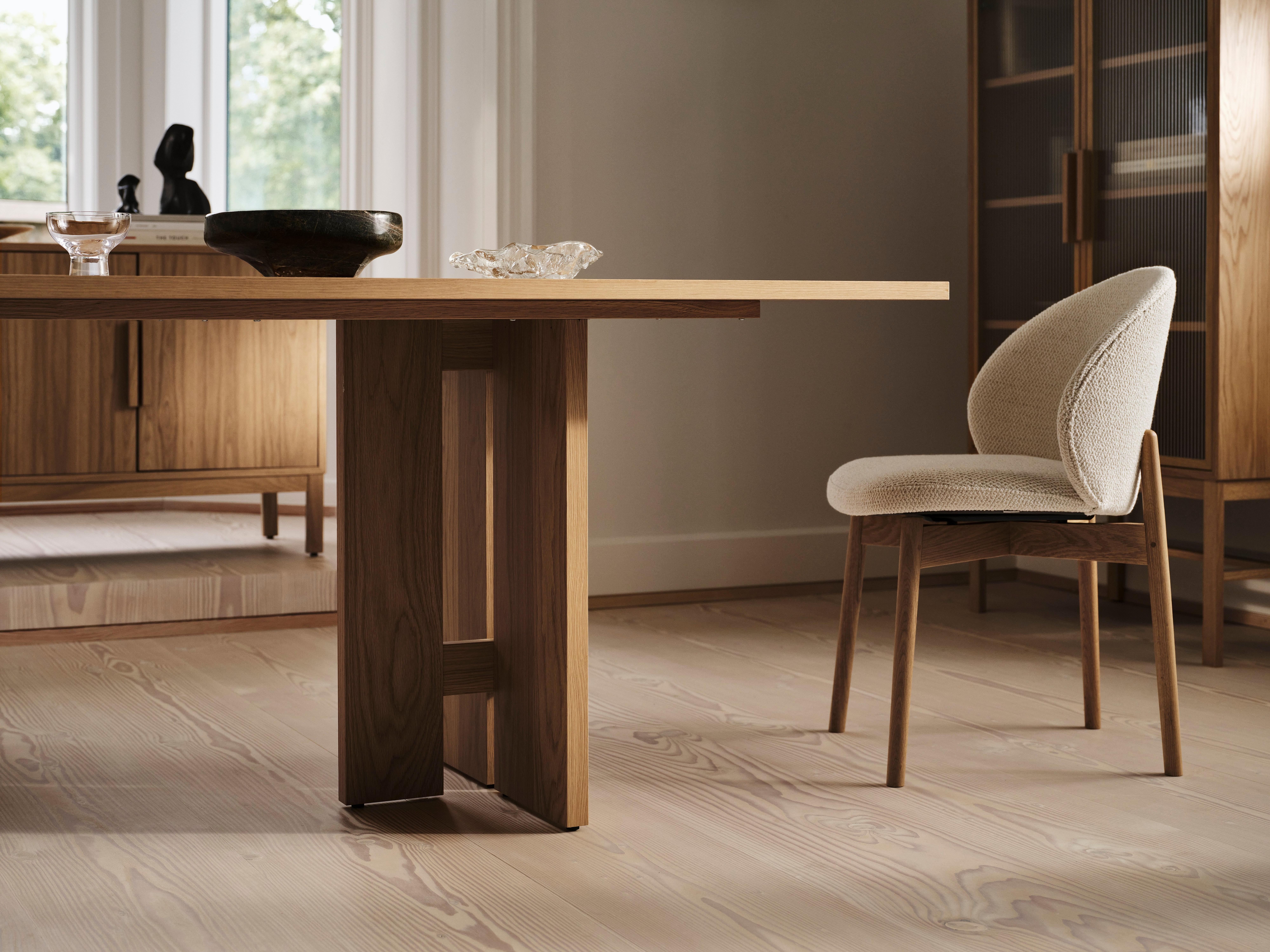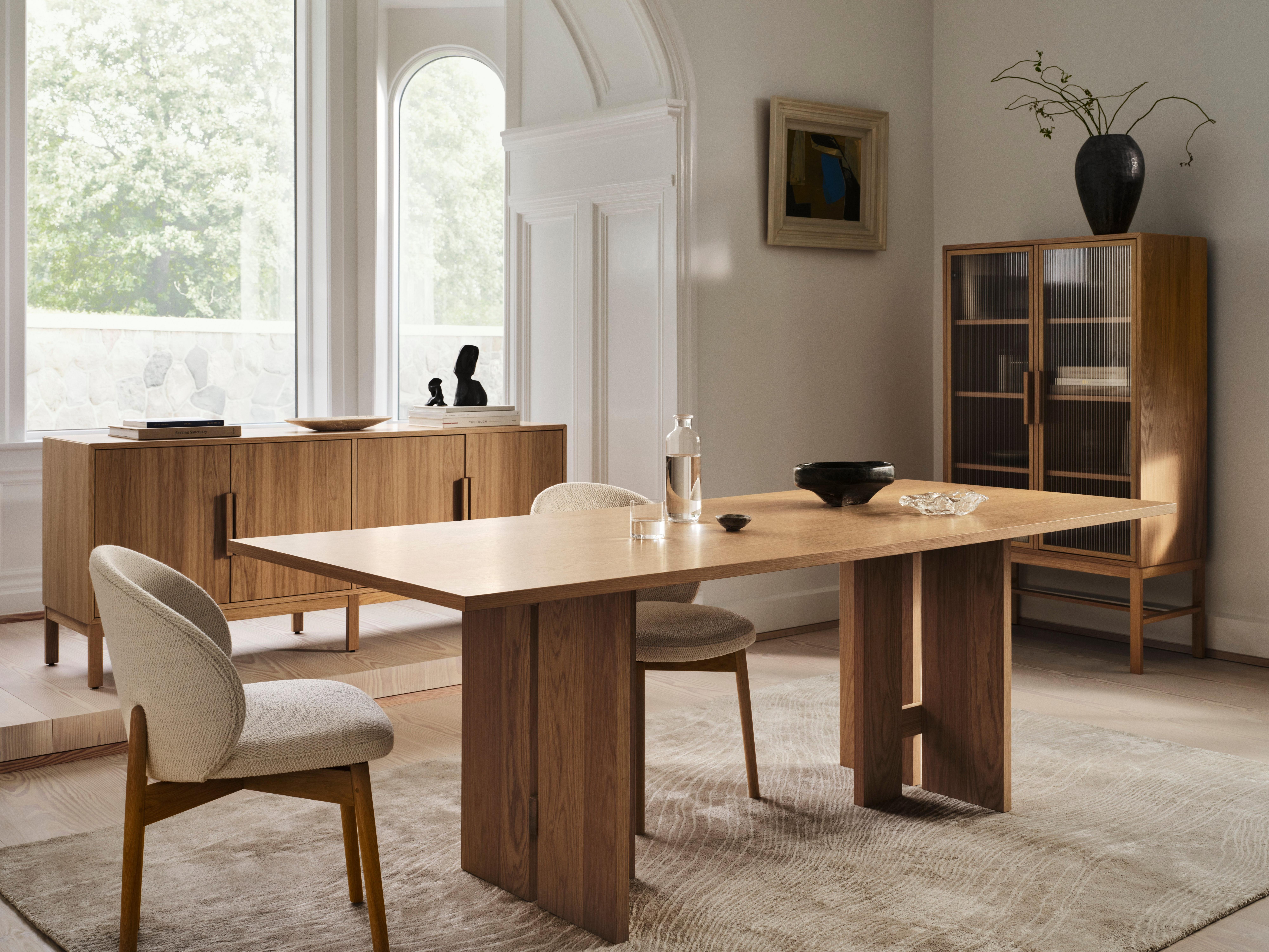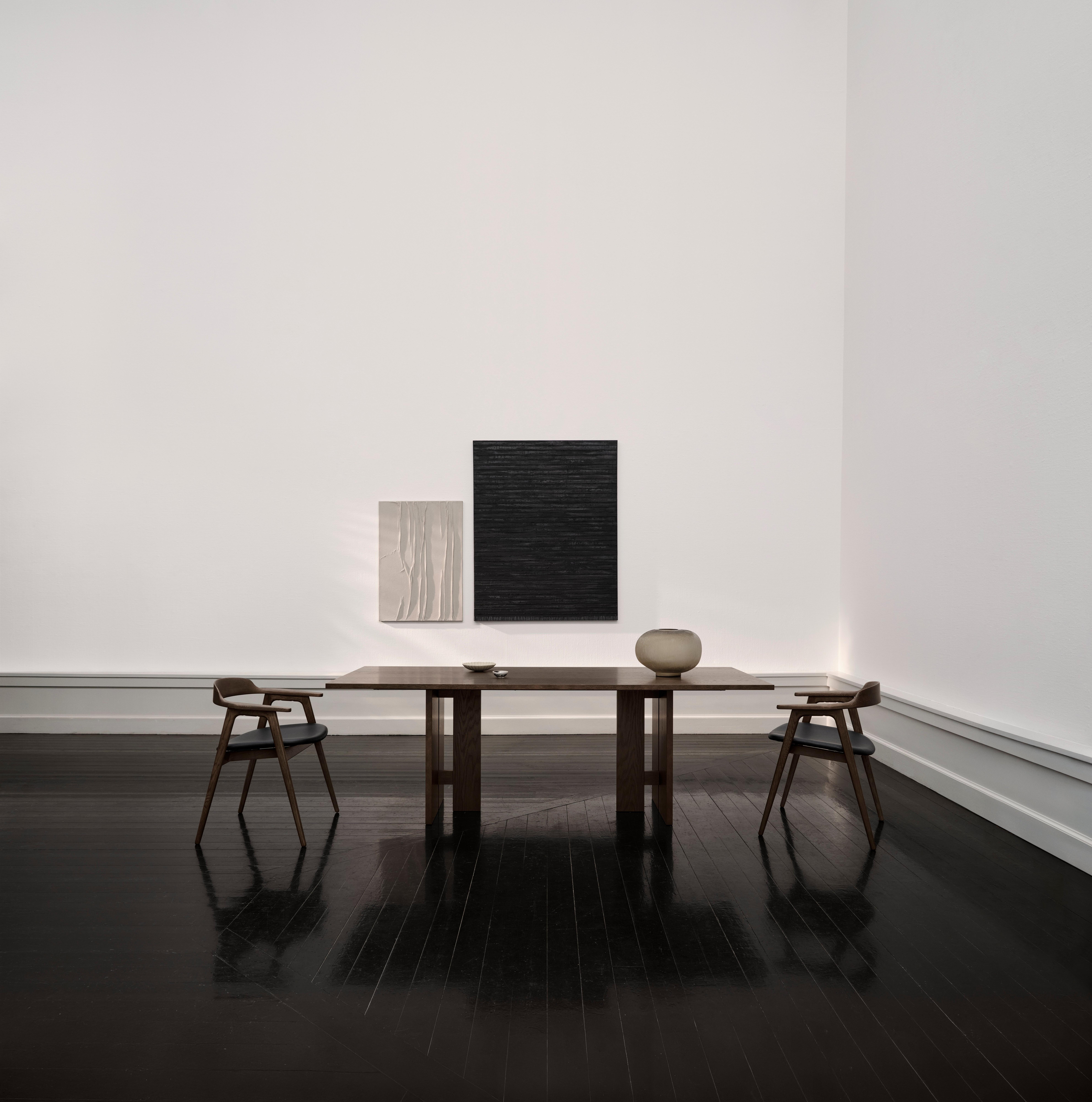 Стол с выверенными геометрическим силуэтом и четкими линиями отражает скульптурный подход atelier axo к датскому дизайну — уверенный, умиротворенный и минималистичный.