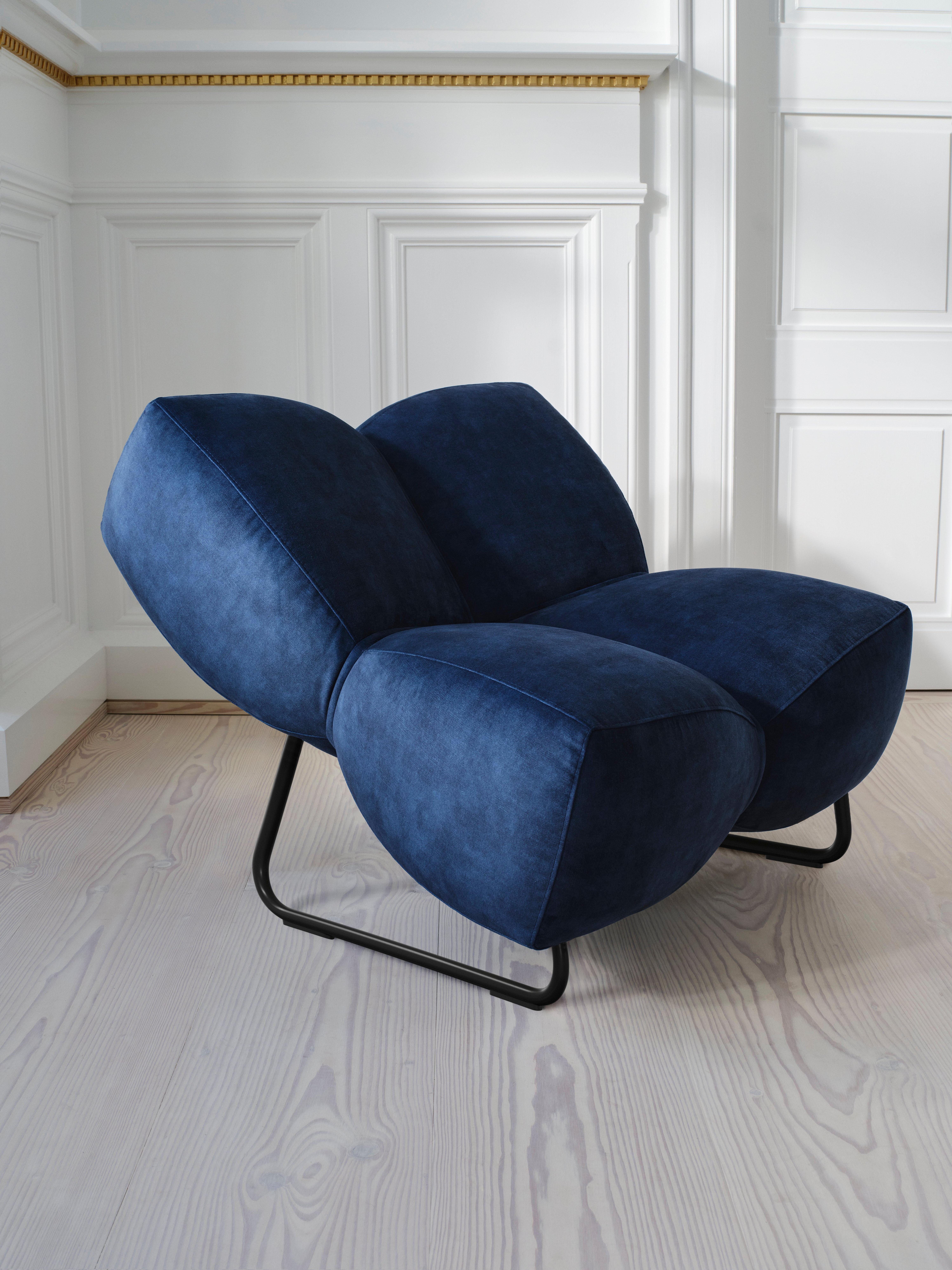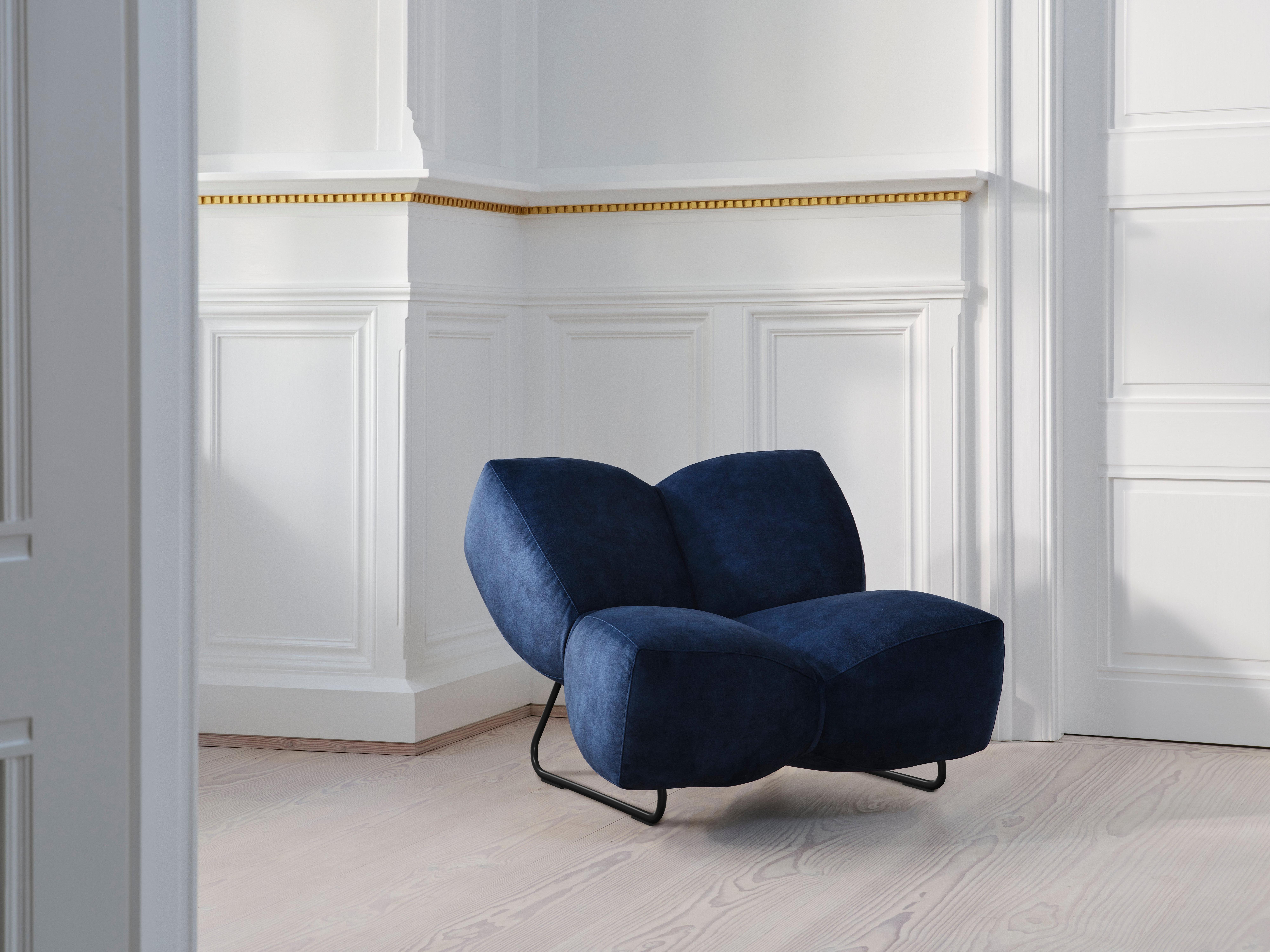 黑色金屬支腿展現出一種俐落的現代衝擊感,使椅子的雕塑風形體更銳利,更具精緻的建築風格,非常適合大膽的設計主導空間。