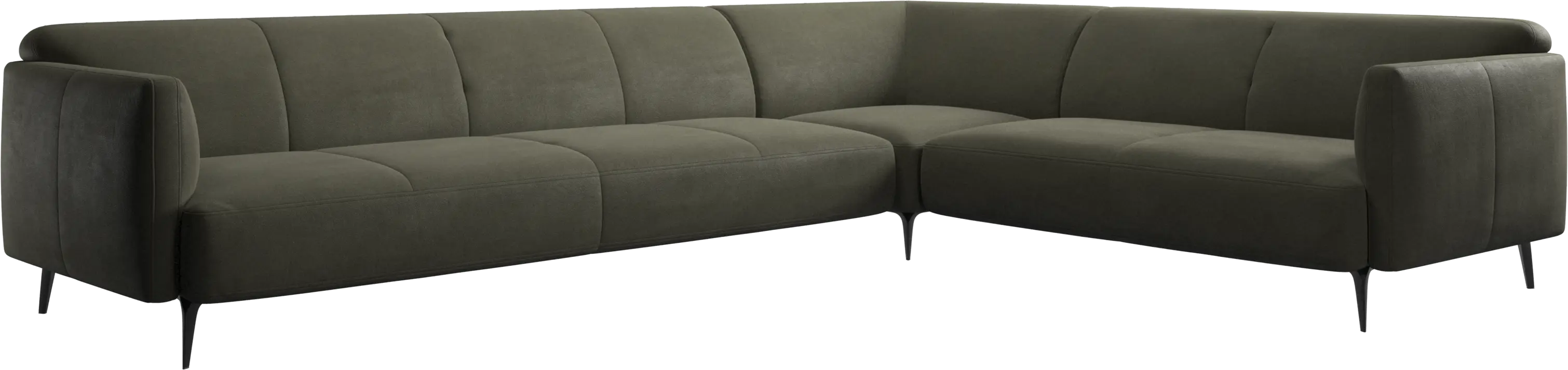 適合現代客廳的奢華白色皮革轉角沙發 - 綠色